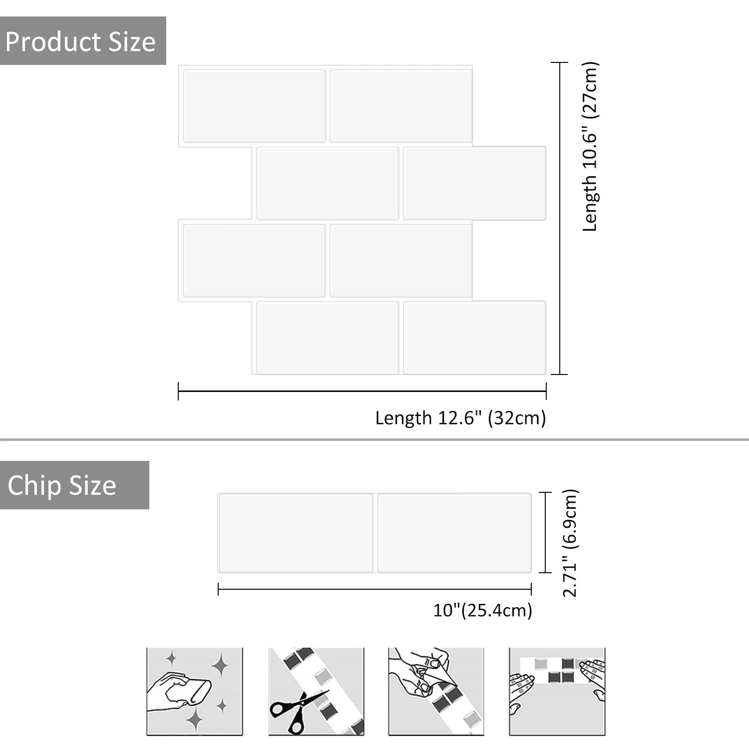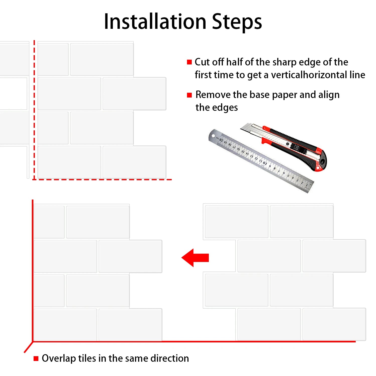10 Sheets Big Tiles Peel and Stick Wall Stickers Brick Vinyl Wallpaper Waterproof Kitchen Bathroom Backsplash Home Decor
