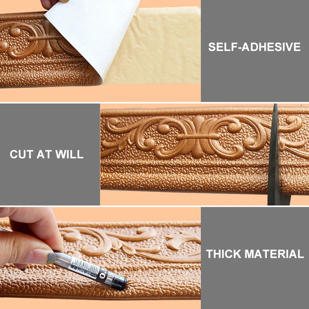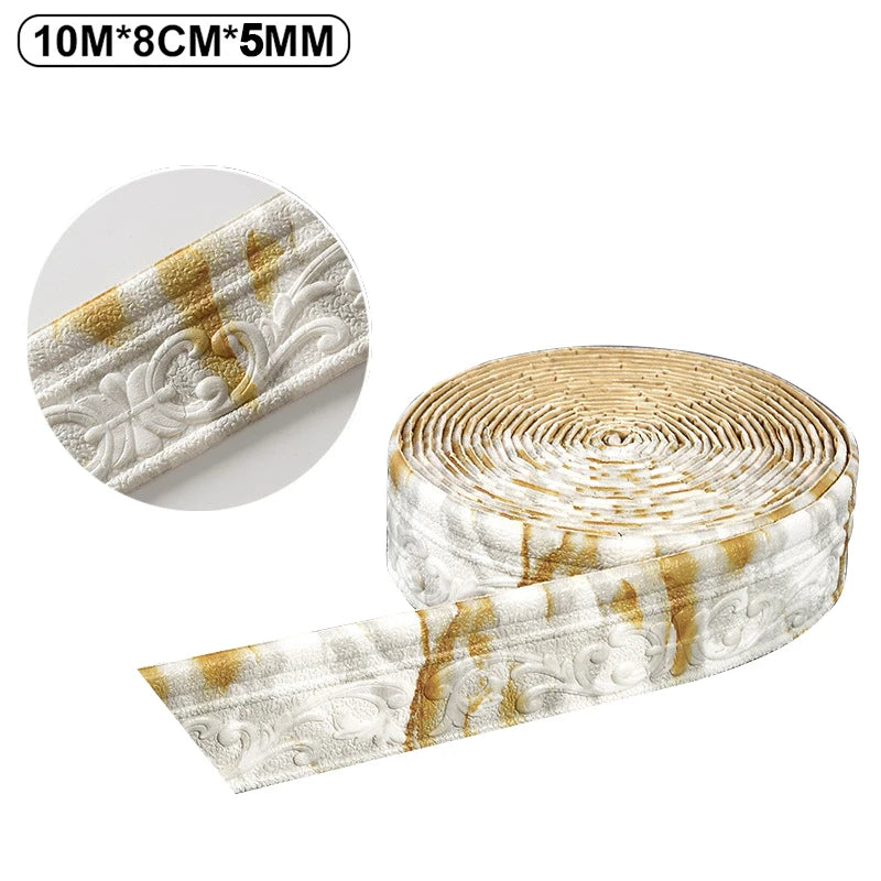 10m/2.3M 3D Wall Trim Line Skirting Border Self Adhesive Waterproof Baseboard Wallpaper Wall Sticker for Room Home Decoration
