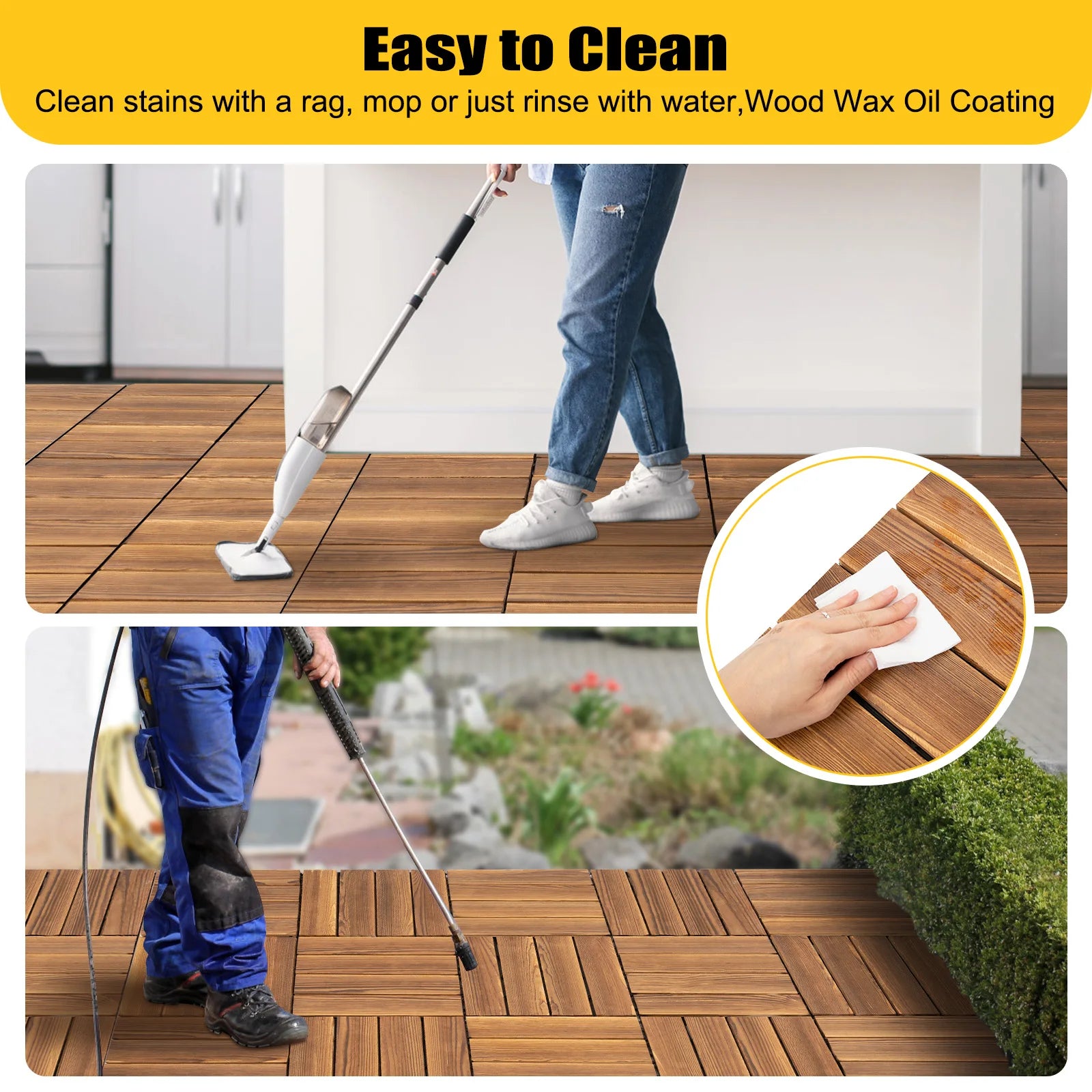 36ft²/ 3.24㎡ Outdoor Hardwood Flooring Tiles Interlock Edge Waterproof for Patio, Each Tile 12"/30cm*30cm, 36 Pack - Brown