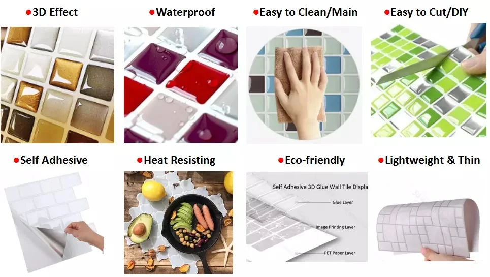 Tấm Dán Tường 3D Vân Xương Cá Đen Bóng Dán Bếp