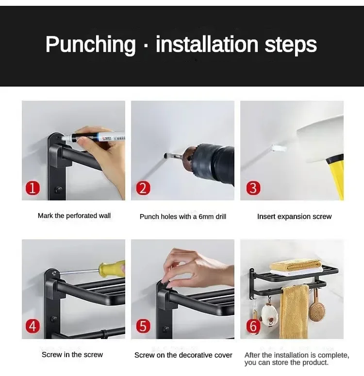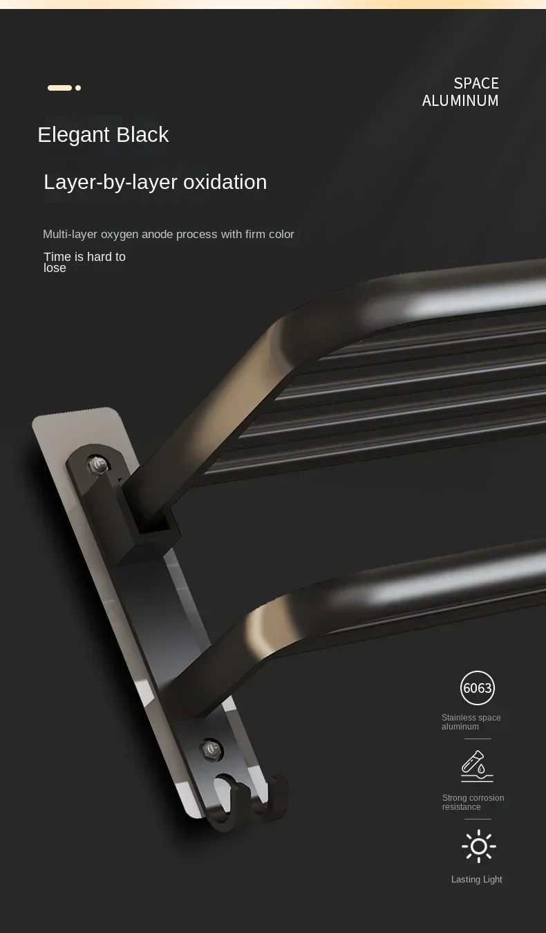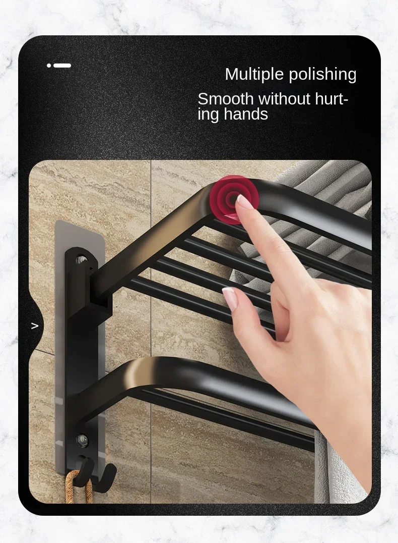 Giá Treo Khăn Dán Tường Nhôm Đen Gập Gọn 40-60CM