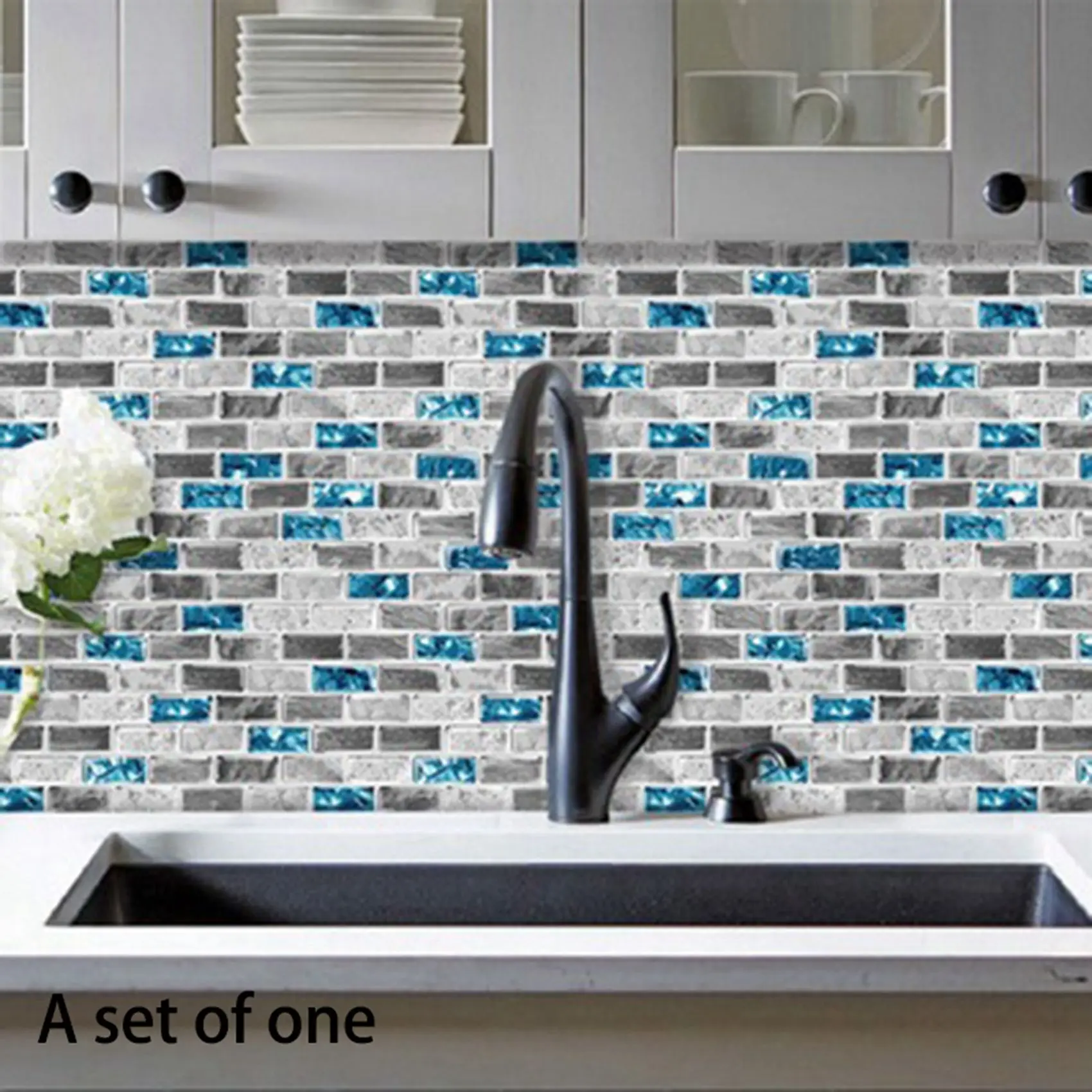 ABYN-2X Vivid Tiles Blue Peel And Stick Tiles 3D Brick Effect Waterproof Kitchen Backsplash Decor Self Adhesive Wallpaper
