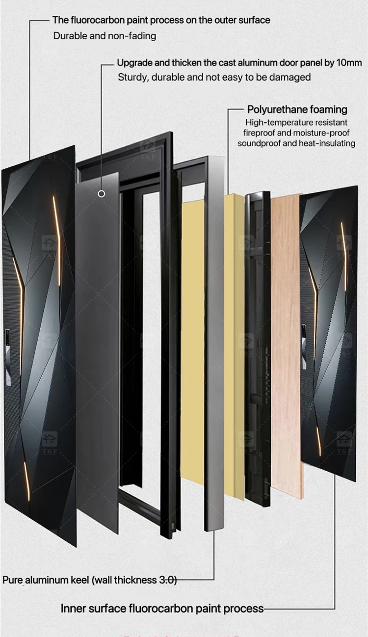 Cửa Chính Nhôm An Ninh Hoàn Thiện Chống Thấm Nước Phong Cách Hiện Đại Tối Giản