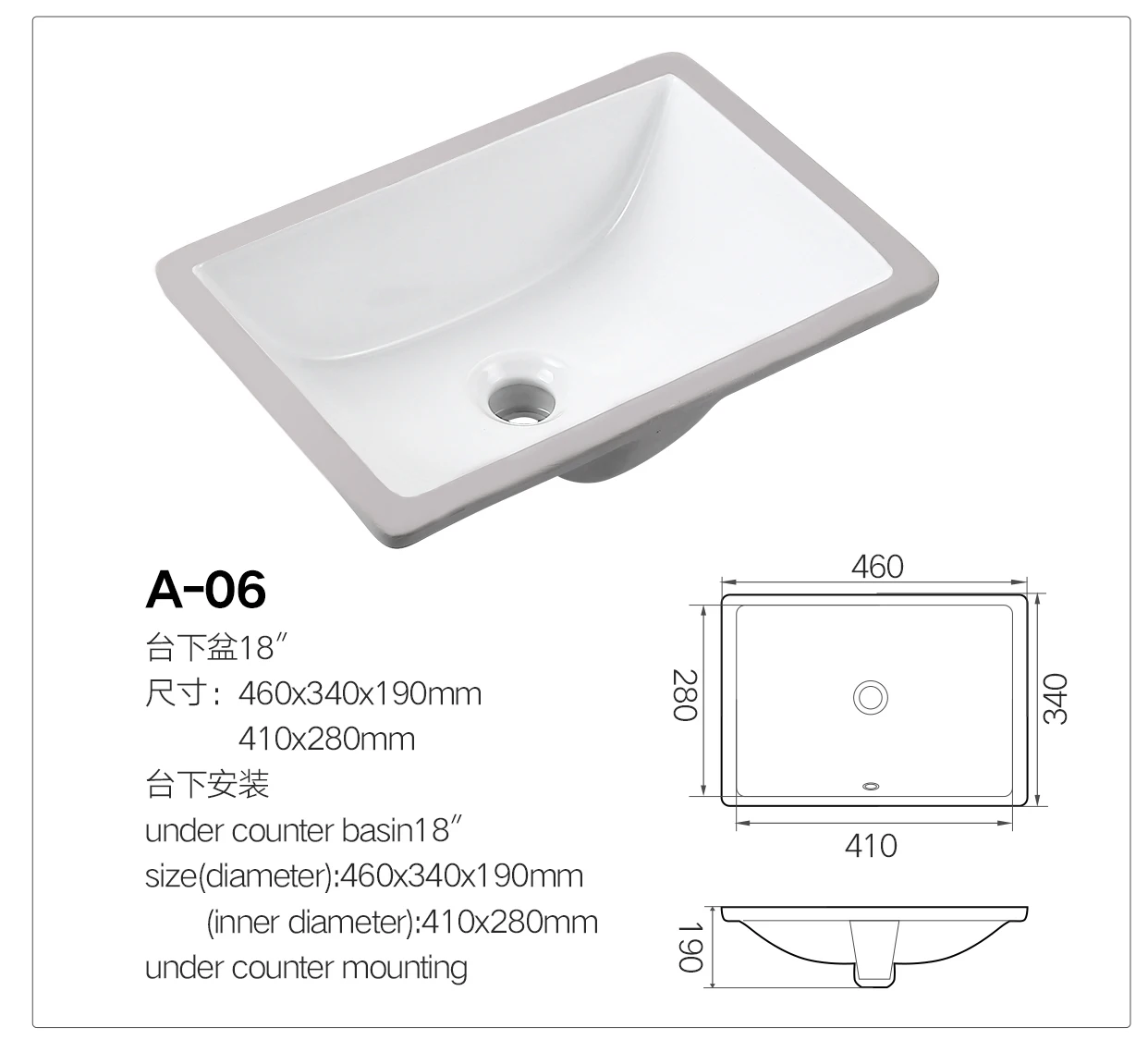 Bồn rửa sứ trắng đơn giản âm bàn CUPC Bắc Mỹ