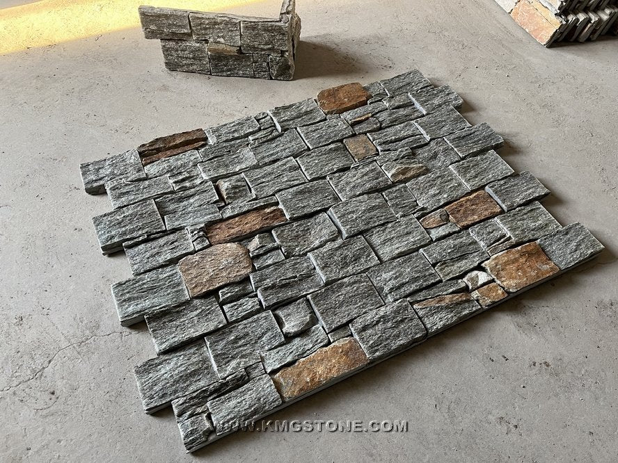 Đá ốp tự nhiên Trung Quốc Thạch anh xanh thiết kế công nghiệp mộc mạc cho ngoại thất, gạch khối chẻ đá vôi