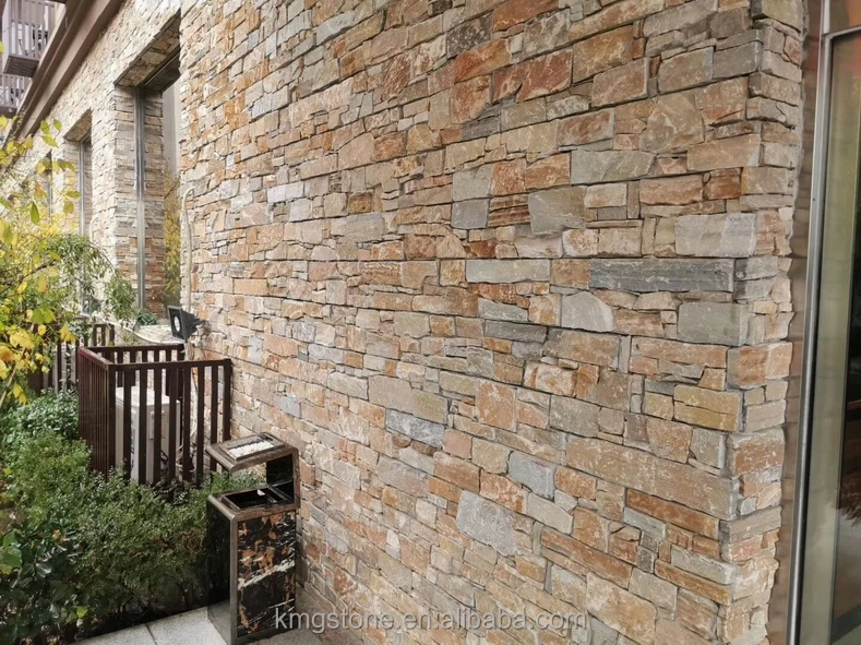 Đá phiến ngoại thất veneer Quartzite vàng tự nhiên cao cấp hiện đại ngoài trời