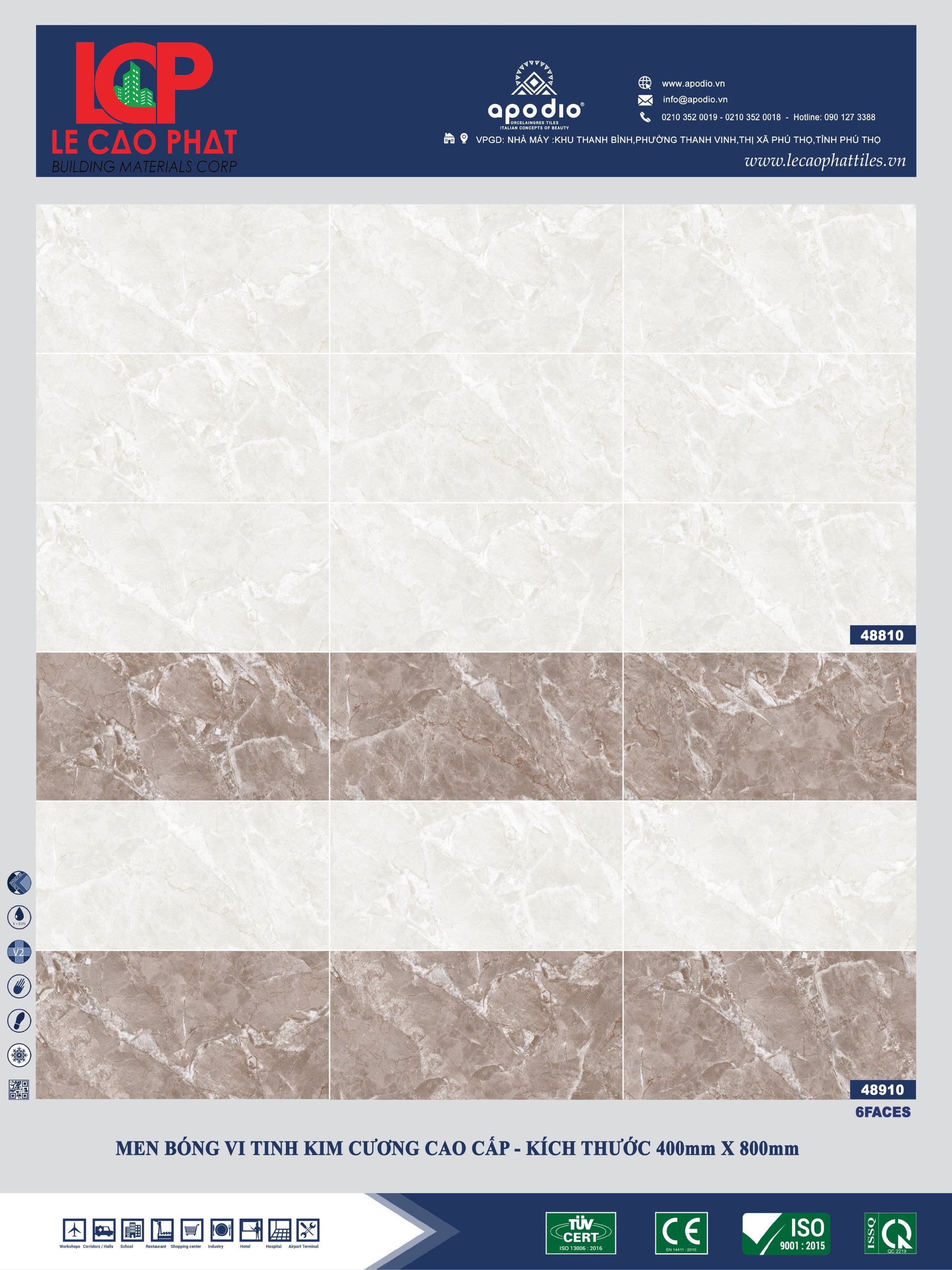 • Hệ vân đá với màu ghi sáng/nâu trung tính, mặt siêu bóng thích hợp với nhiều không gian. Có thể phối màu họa tiết với nhiều vật dụng nội thất trang trí khác để không gian trở nên nổi bật.