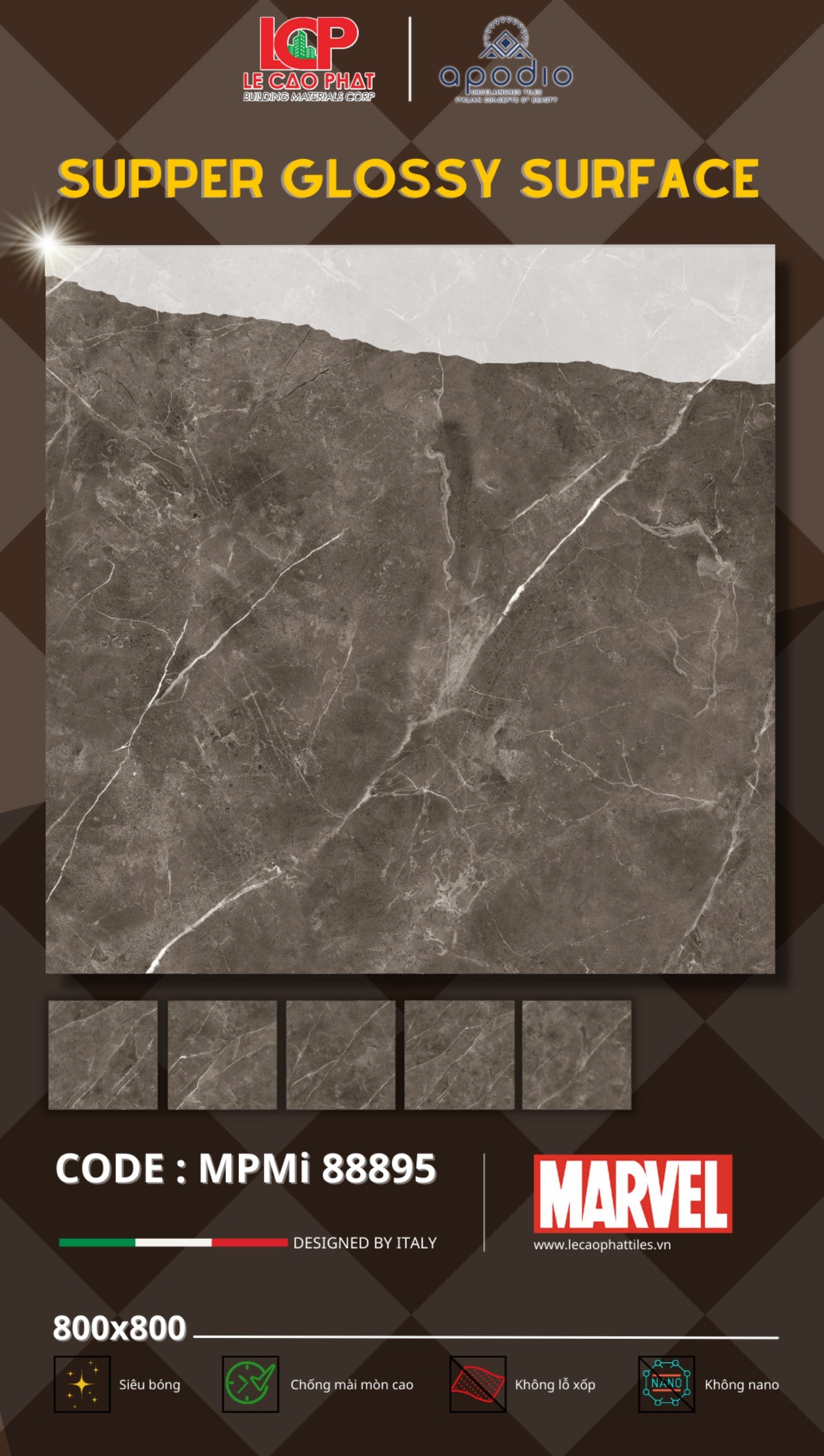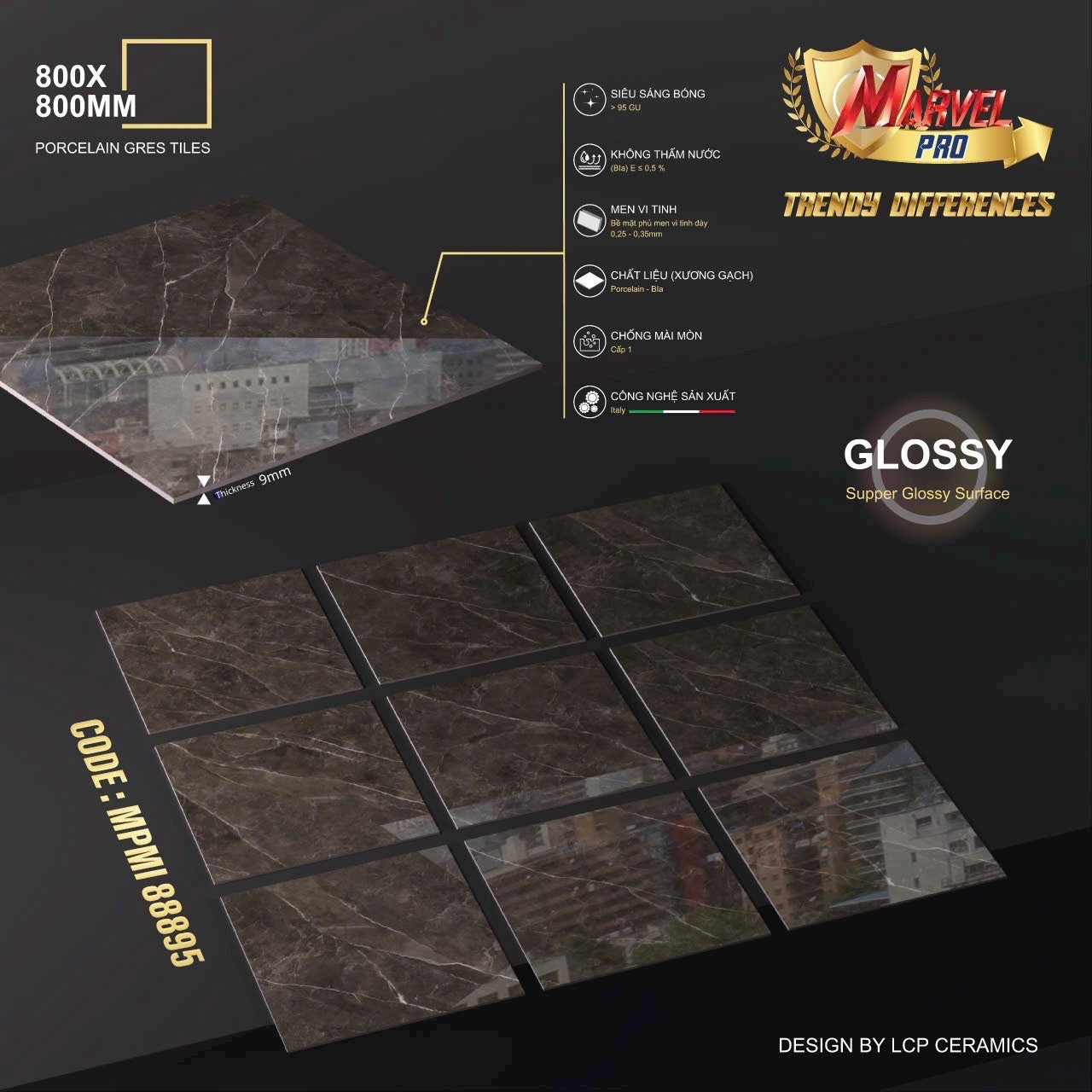 • Hệ vân đá, bề mặt siêu bóng với màu xanh rêu mộc mạc. Các họa tiết tinh tế làm nổi bật nền gạch.