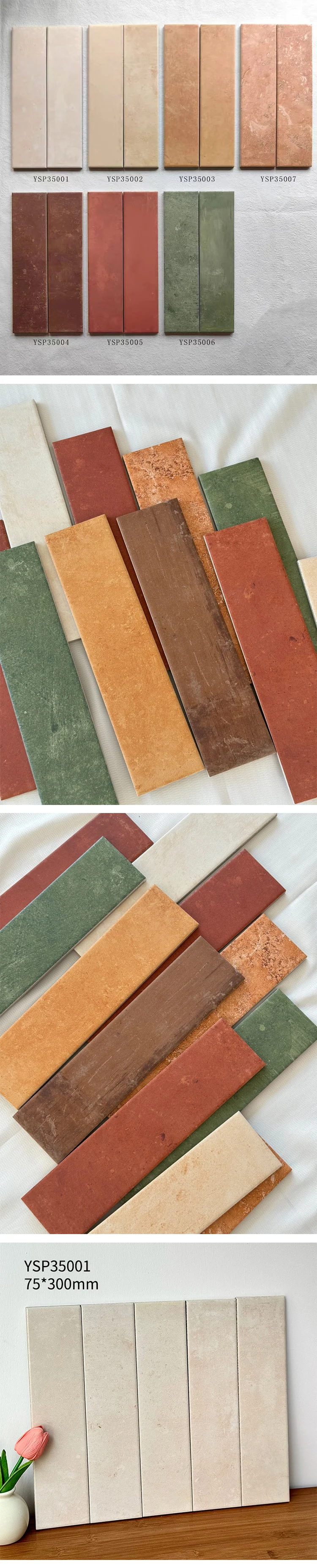 Gạch ốp lát tường sàn gốm sứ thủ công phong cách Retro dạng thanh dài 75x300 cho tường nền phòng tắm, bếp, ban công, nhà hàng - Quảng Đông