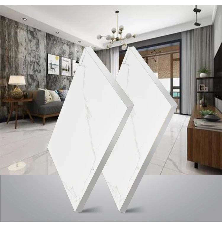 Gạch Ốp Tường 3D Giả Đá Cẩm Thạch Calacatta Vàng Kích Thước Lớn 60x60 Cho Phòng Khách