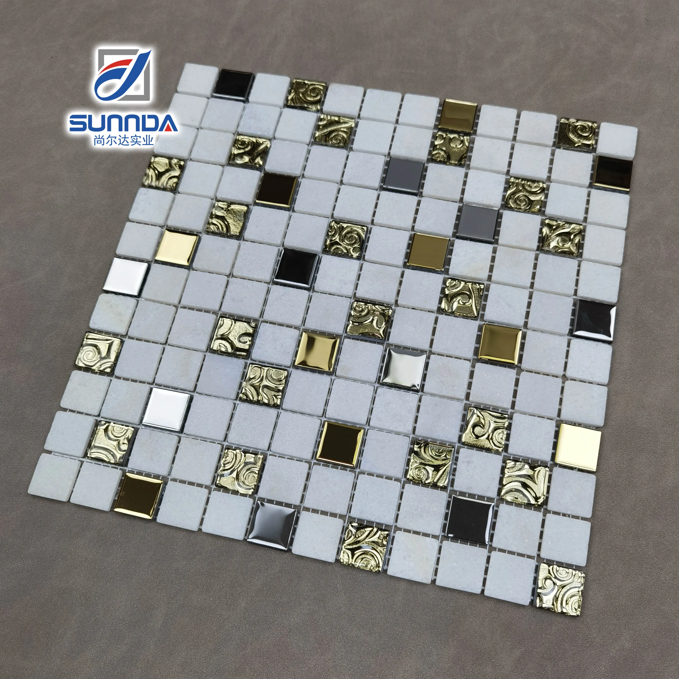 Gạch ốp tường Mosaic Đá Vôi Đá Tự Nhiên Màu Cẩm Thạch