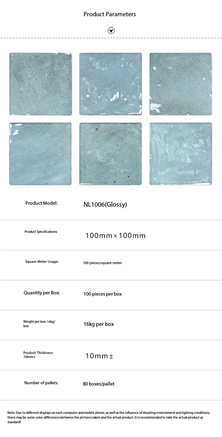 Gạch ốp tường thủ công vitrified phong cách Pháp 100x100mm, thiết kế màu kem bóng mờ