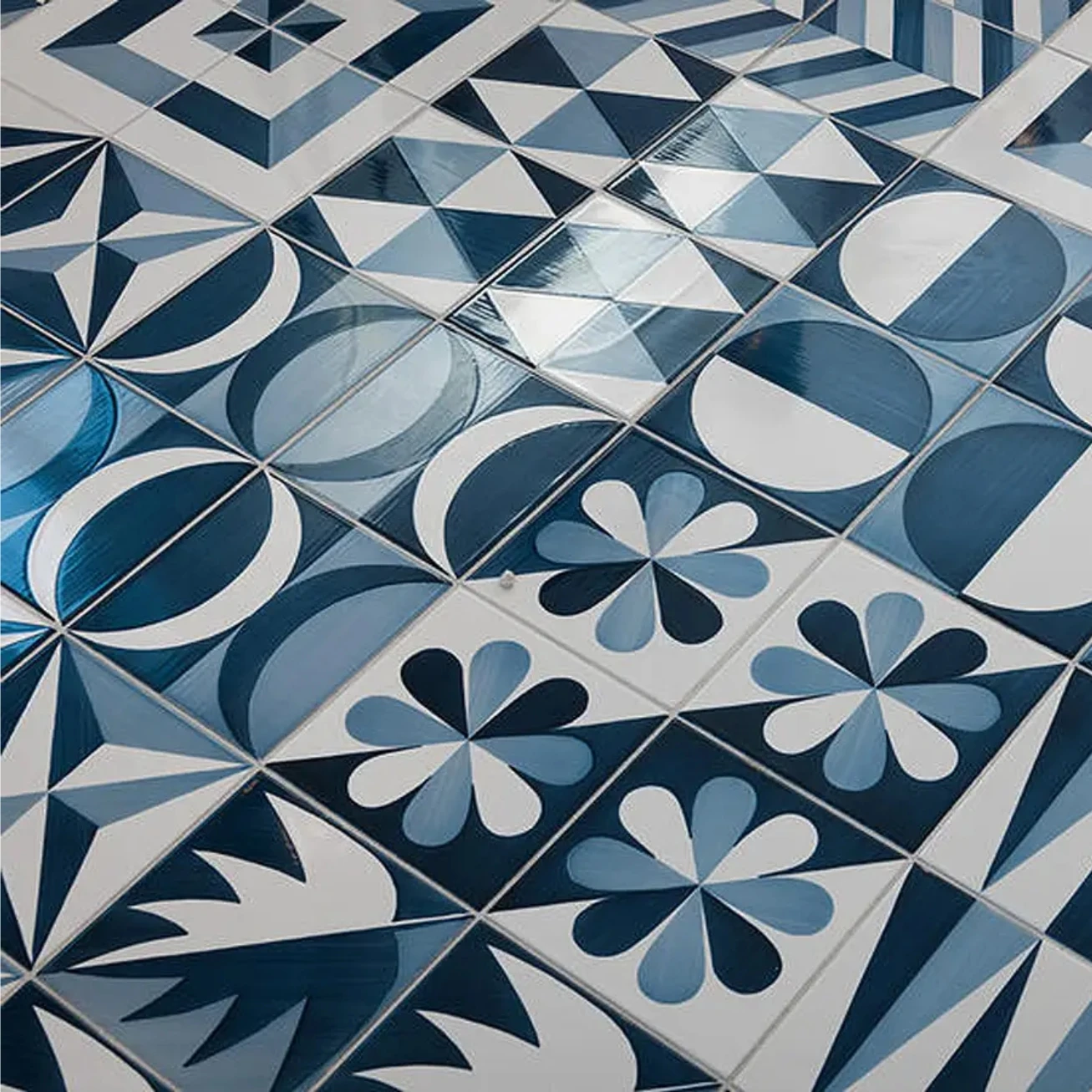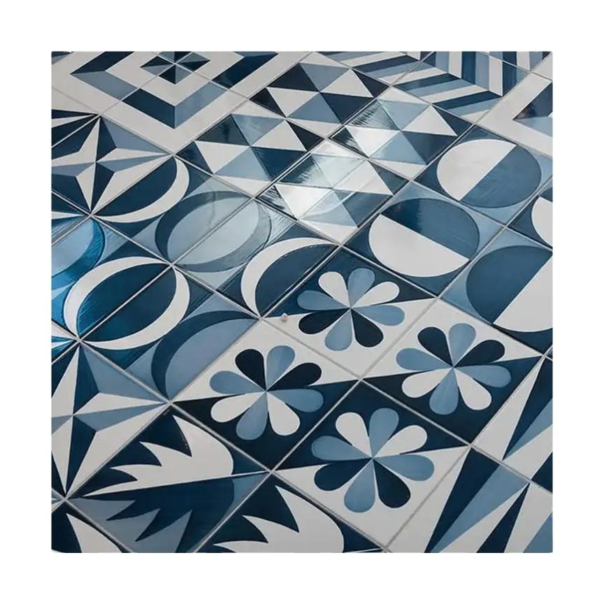 Gạch ốp tường và lát sàn Ceramic thiết kế hiện đại, họa tiết hình học xanh trắng, chất lượng cao, kích thước 200x200mm cho nhà bếp và phòng tắm