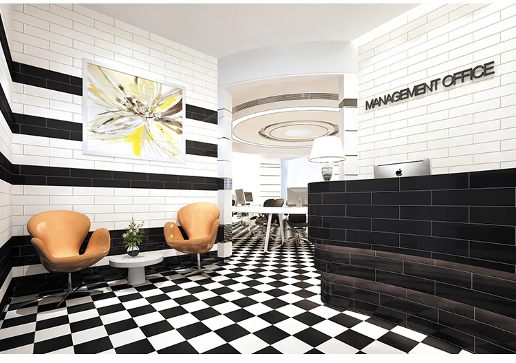 Gạch ốp tường và sàn nhà tắm màu đen trắng 100x400mm/4x16 inch