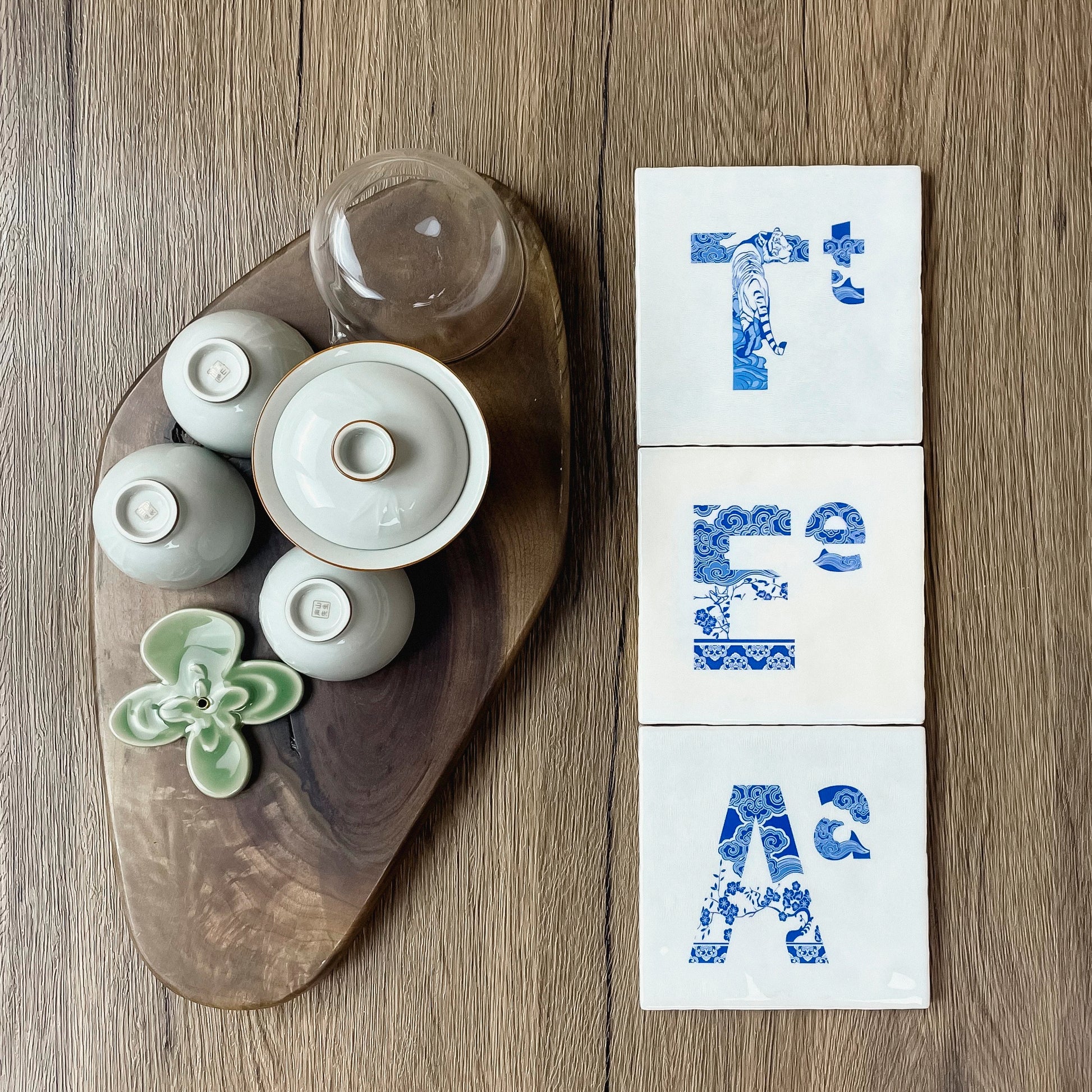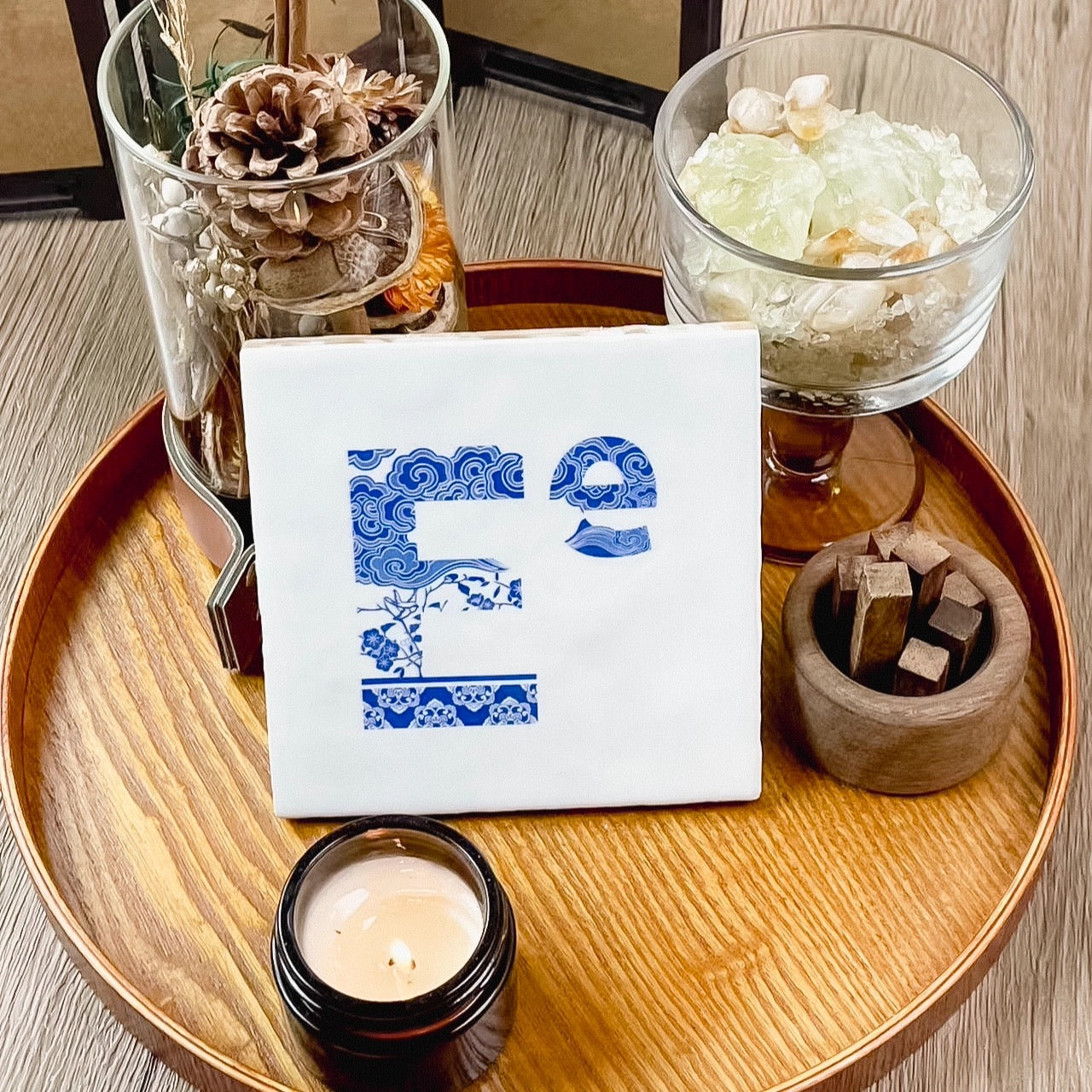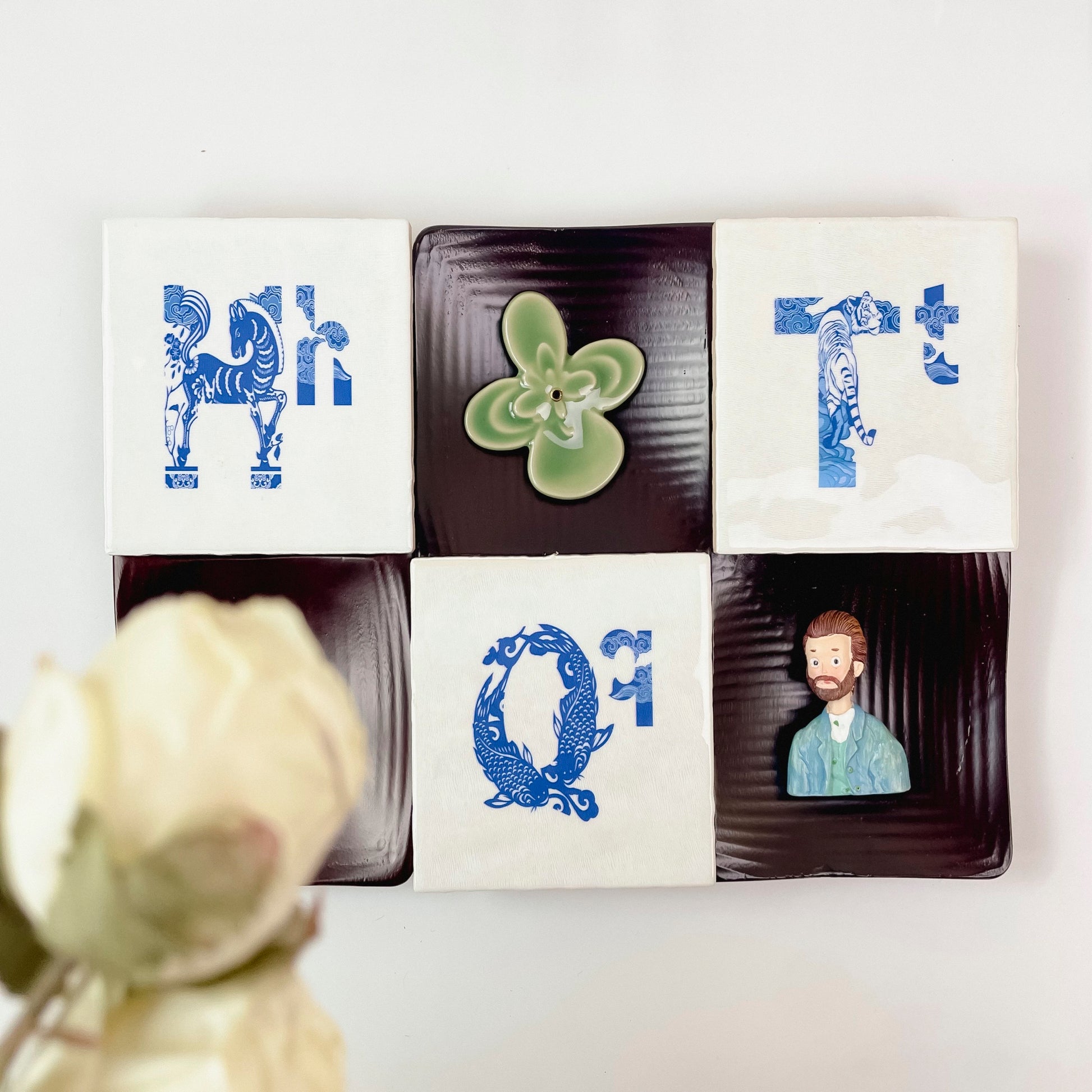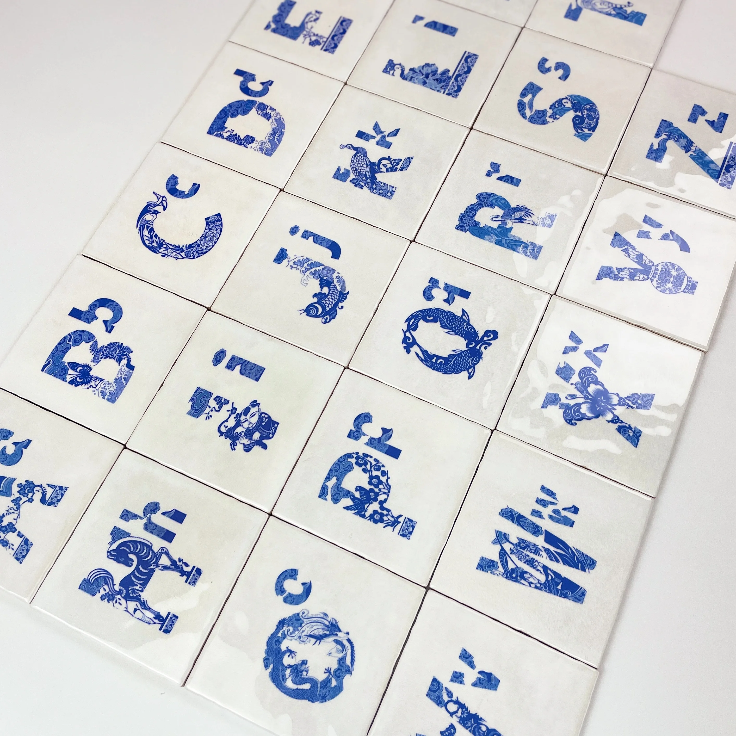Gạch Chữ Cái Gốm Sứ Tráng Men Bóng Xanh Trắng Hiện Đại