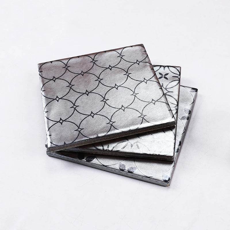 Gạch Gốm Sứ Tráng Men Màu Bạc Giả Kim Loại 150x150mm Ốp Tường Nhà Tắm Phòng Khách Sân Vườn Ban Công