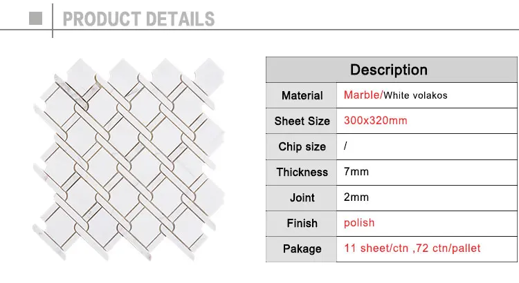 Gạch khảm đá cẩm thạch trắng Carrara không đều trang trí nghệ thuật Gạch khảm đá