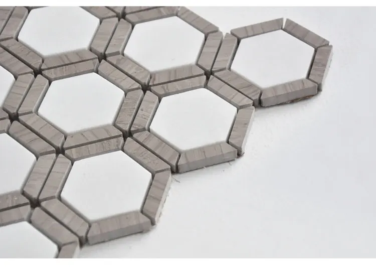 Gạch khảm đá cẩm thạch trắng và xám hoàn thiện đánh bóng hình lục giác sẵn sàng giao hàng cho sàn phòng tắm