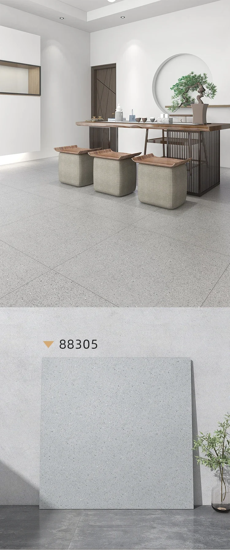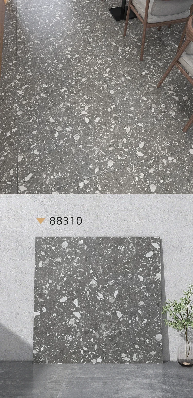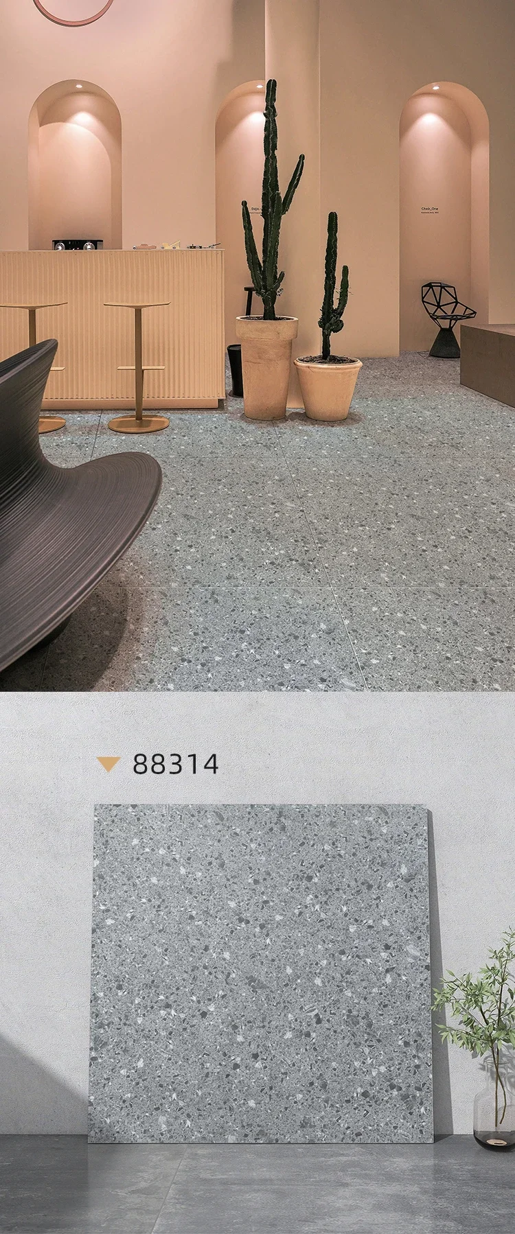 Gạch lát sàn chống trượt sứ vân Terrazzo Xám mờ 800x800mm cho Phòng tắm, Phòng khách, Ban công, Sân vườn