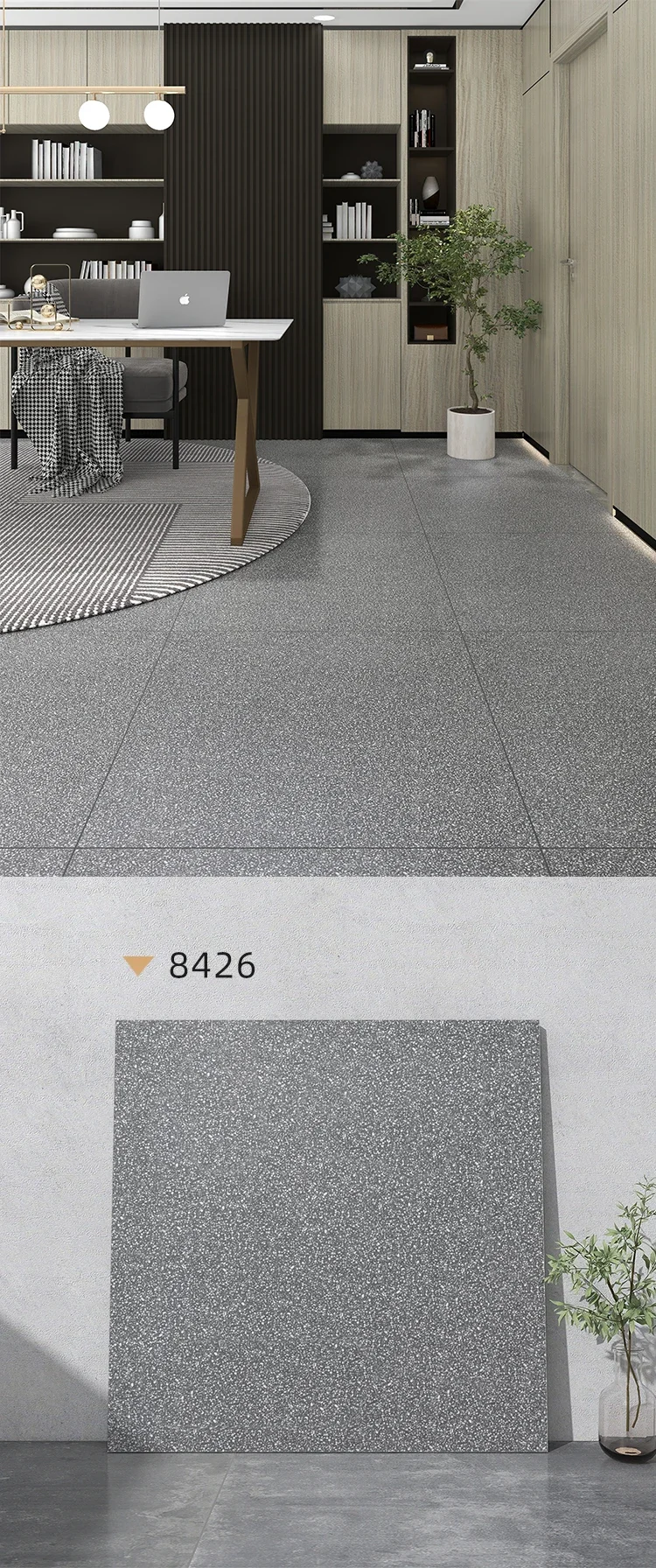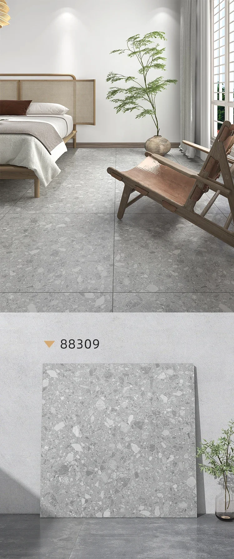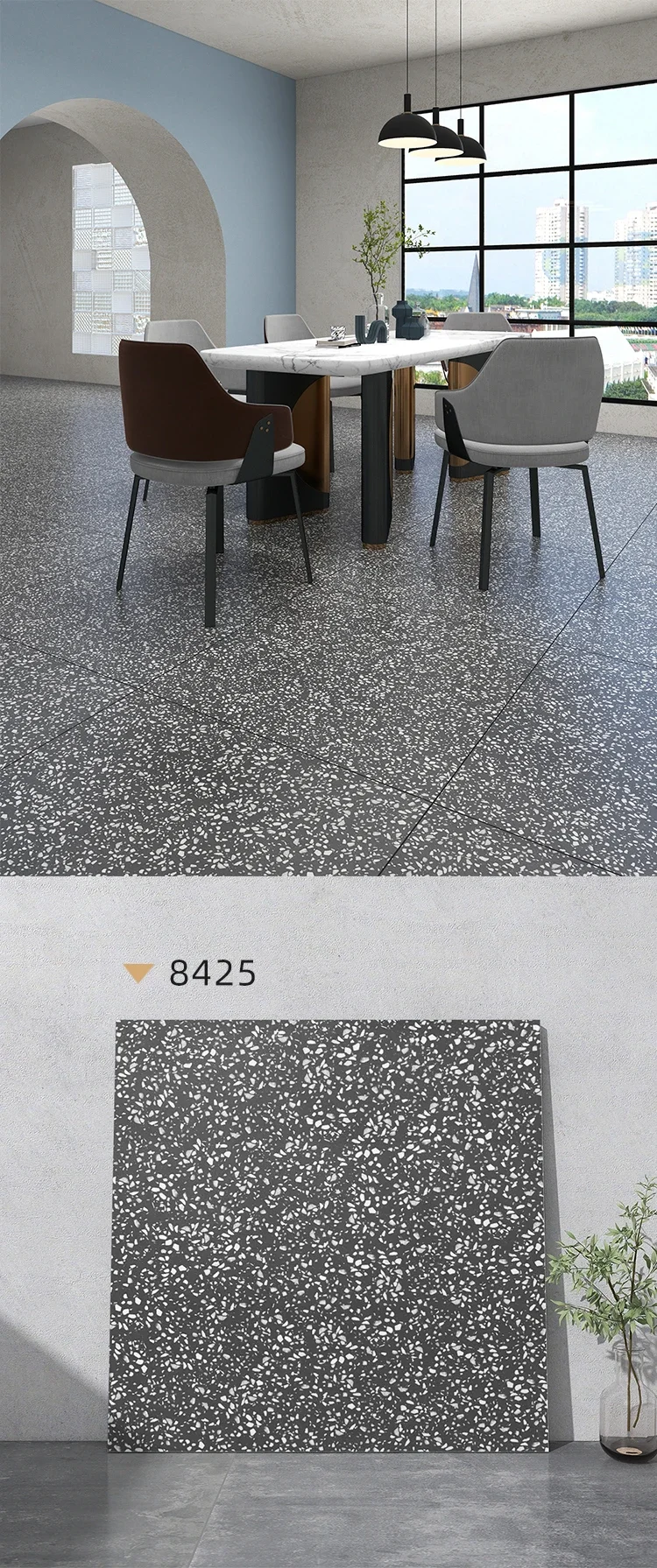 Gạch lát sàn chống trượt sứ vân Terrazzo Xám mờ 800x800mm cho Phòng tắm, Phòng khách, Ban công, Sân vườn