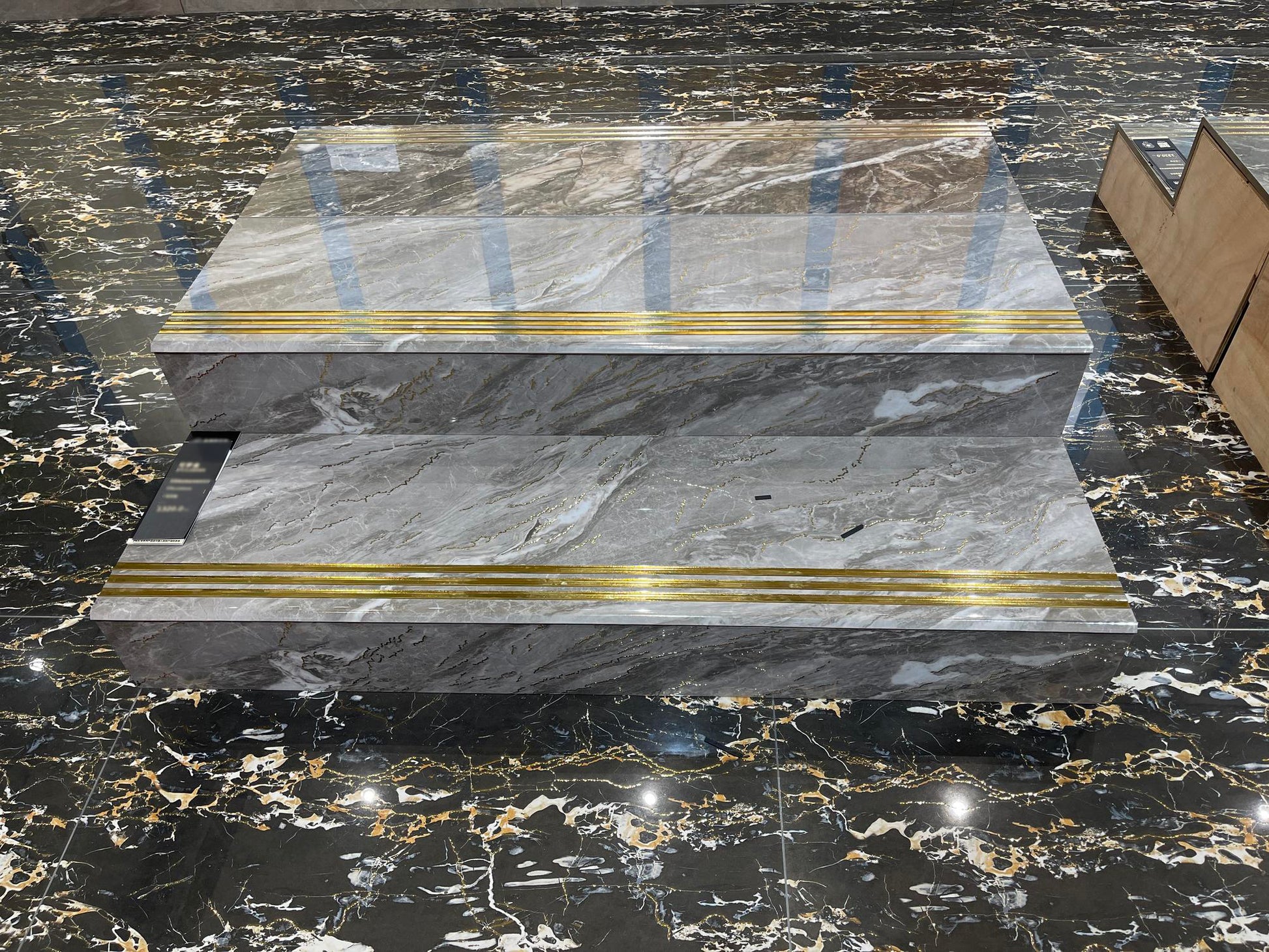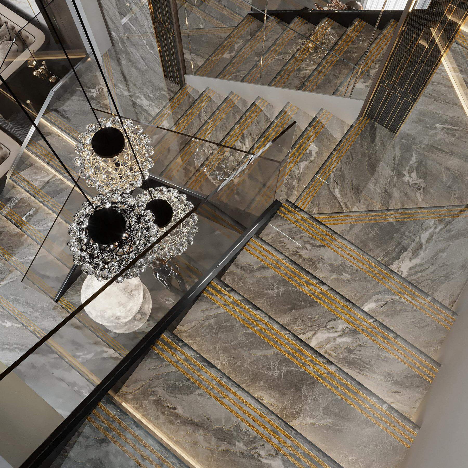 Gạch lát Sang trọng Chống trượt Dát vàng Vân đá cẩm thạch dành cho Cầu thang biệt thự hiện đại trong nhà, căn hộ và Thiết kế nội thất hiện đại