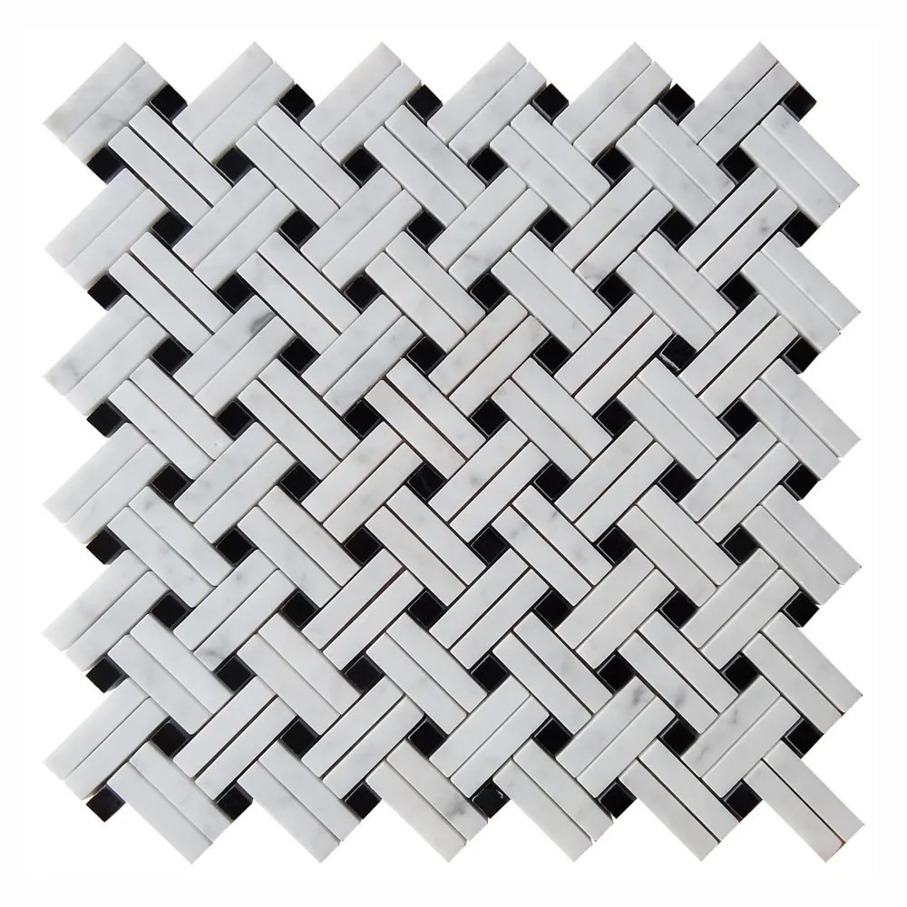 Gạch mosaic đá cẩm thạch đan rổ Bianco Carrara với các chấm đá cẩm thạch màu xám Bardigilo - Giải pháp thiết kế nội thất