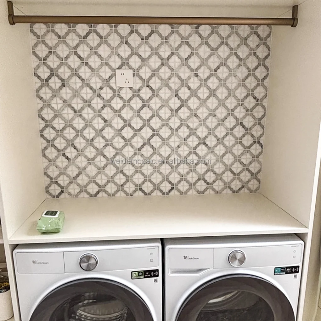 Gạch Mosaic Đá Tự Nhiên Xám Trắng cho Ốp Bếp, Tường Phòng Tắm