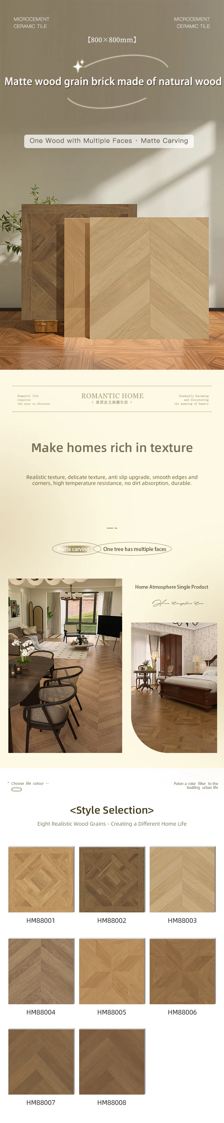 Gạch Porcelain Lát Sàn Nội Thất Bề Mặt Mờ Vân Gỗ 800x800mm