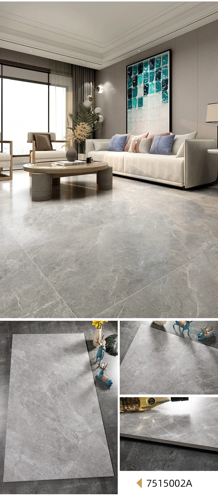 Gạch Porcelain Lát Sàn Tráng Men Vân Đá Cẩm Thạch Hiệu Ứng Trắng Xám Xương Đồng Chất Ánh Sáng Dịu 750X1500mm Giá Sỉ