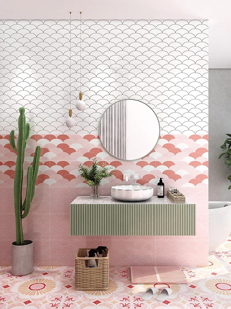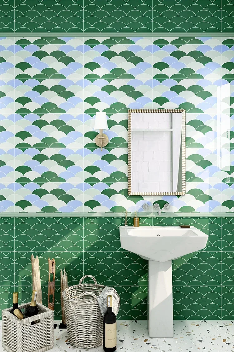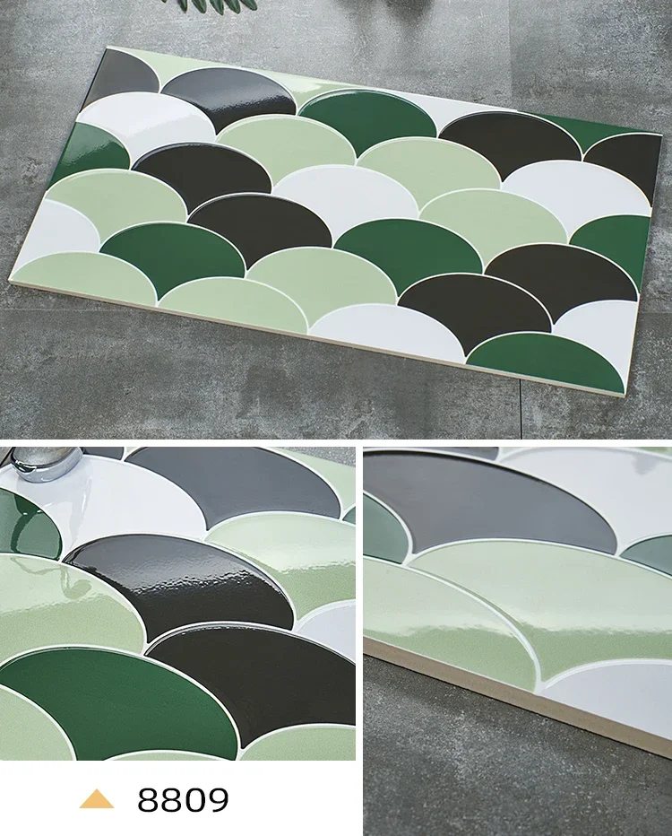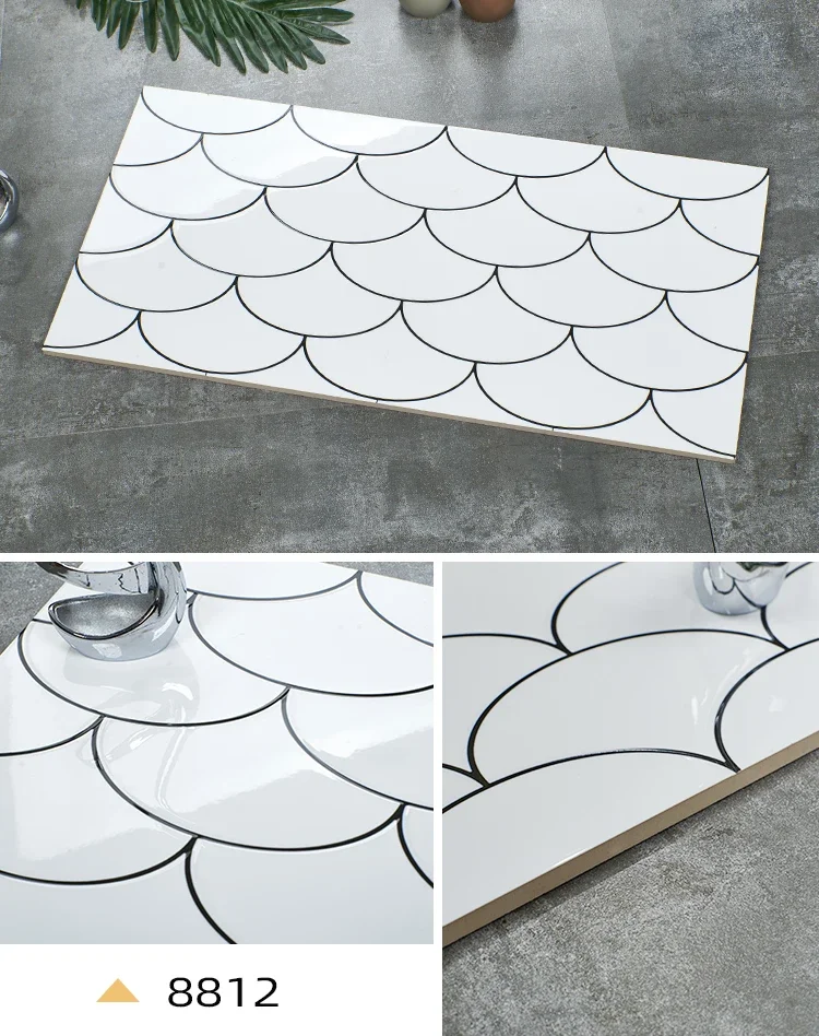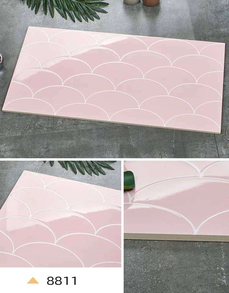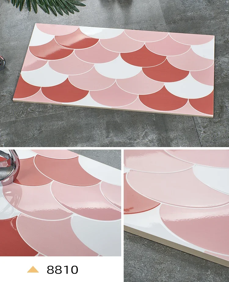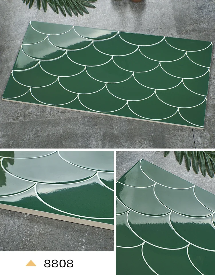 Gạch Sứ Ốp Tường Dạng Thanh Lồi Lõm 300x600, Bề Mặt Bóng, Họa Tiết Vảy Cá, Tráng Men Đánh Bóng Toàn Phần, Cá Tính Sắc Màu