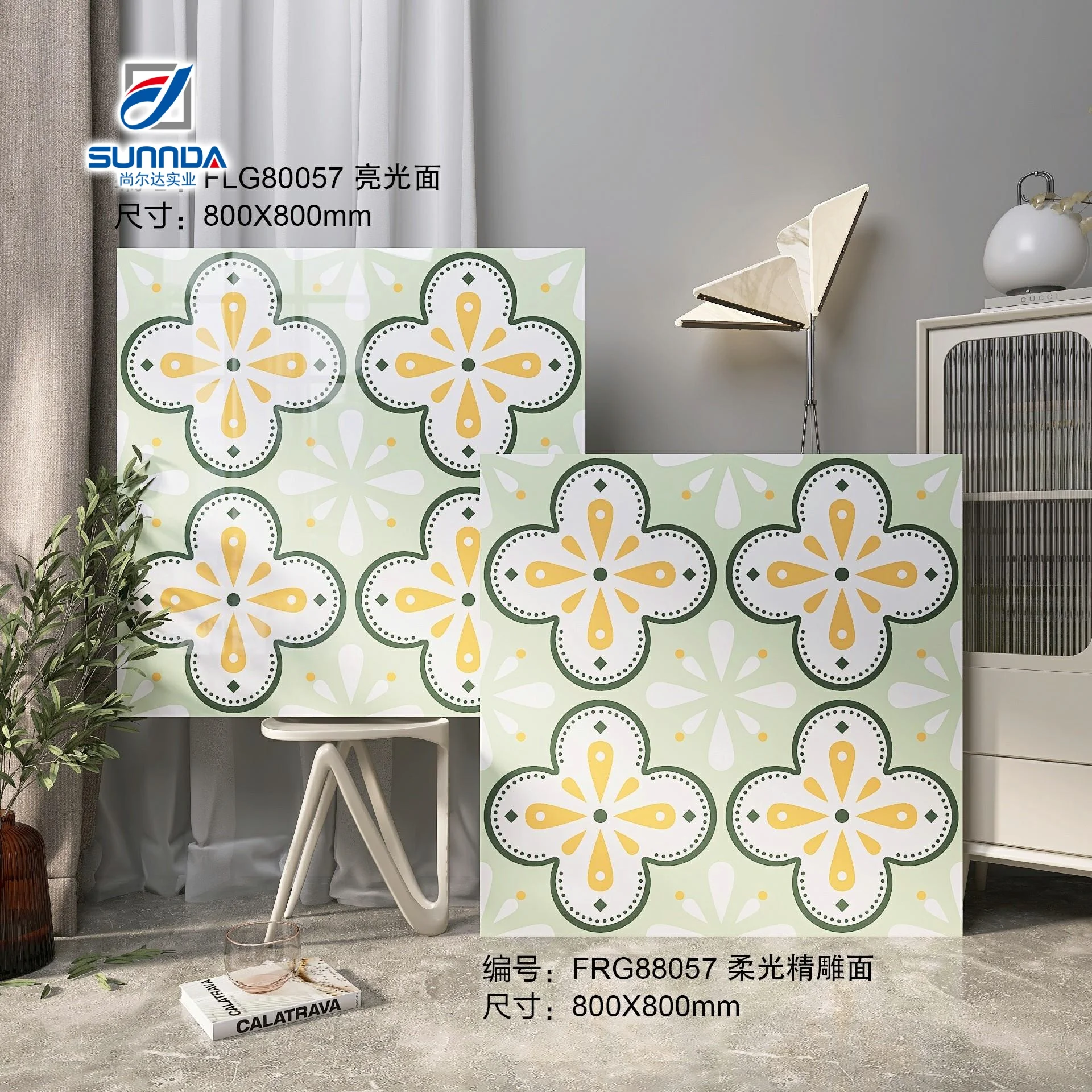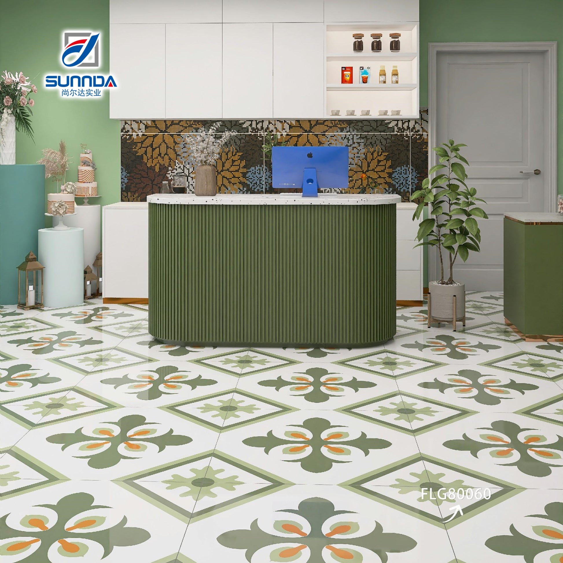 Gạch Sứ Lát Sàn Thiết Kế Hoa, Bề Mặt Bóng và Mờ, Tráng Men Kỹ Thuật Số Đa Sắc, Gạch Men Trang Trí Nhà Cửa