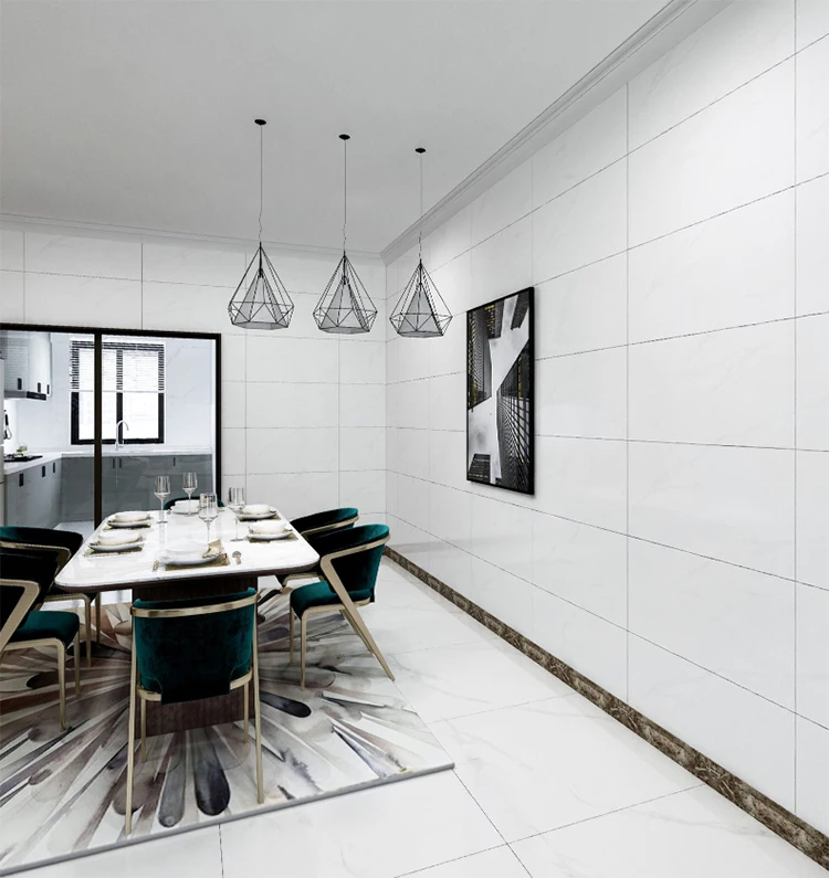 Gạch Sứ Trắng Bóng Họa Tiết Vân Đá Cẩm Thạch Liên Tục Vô Tận 400x800mm, Gạch Ốp Tường, Gạch Lát Sàn Chống Trượt