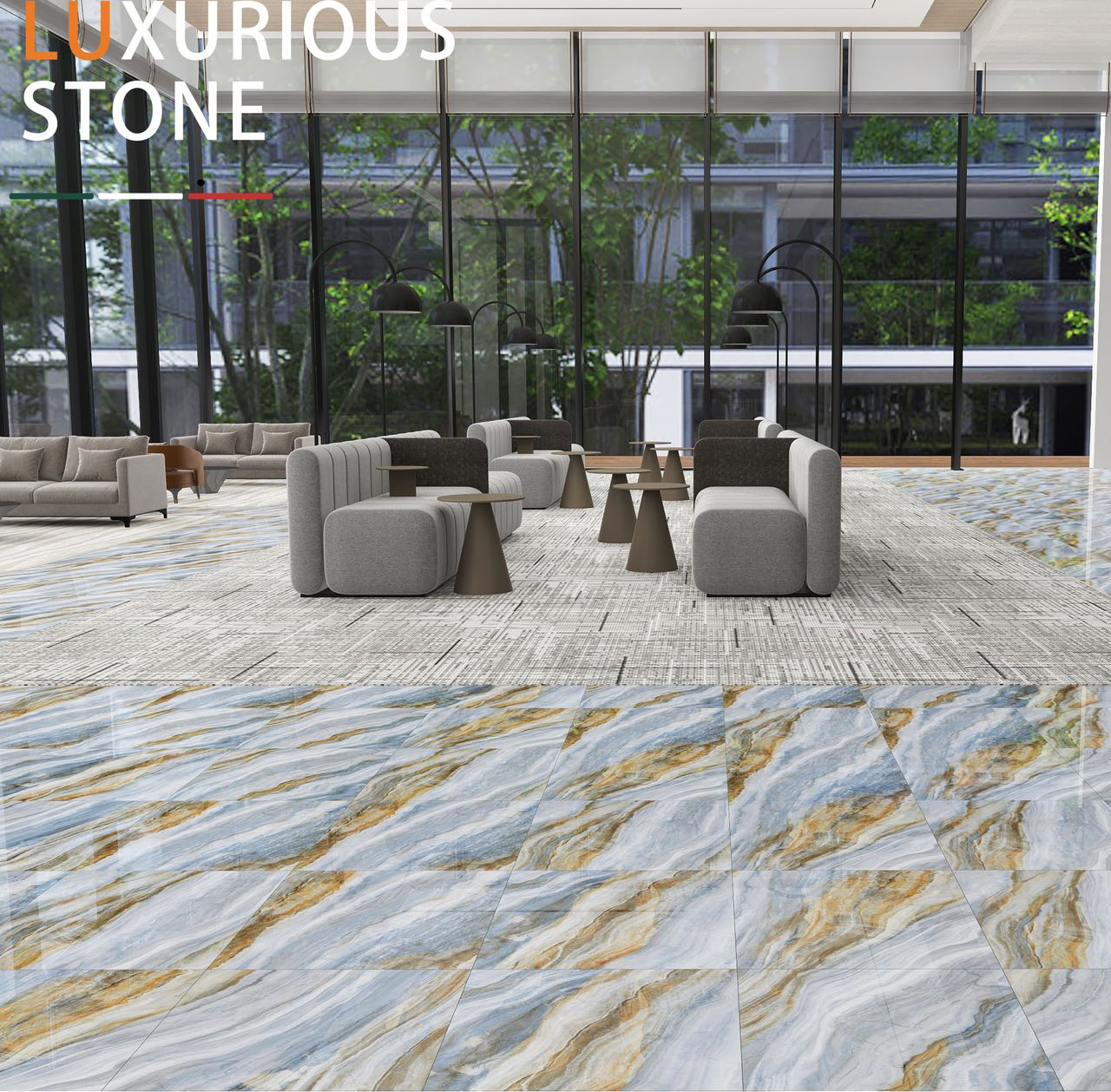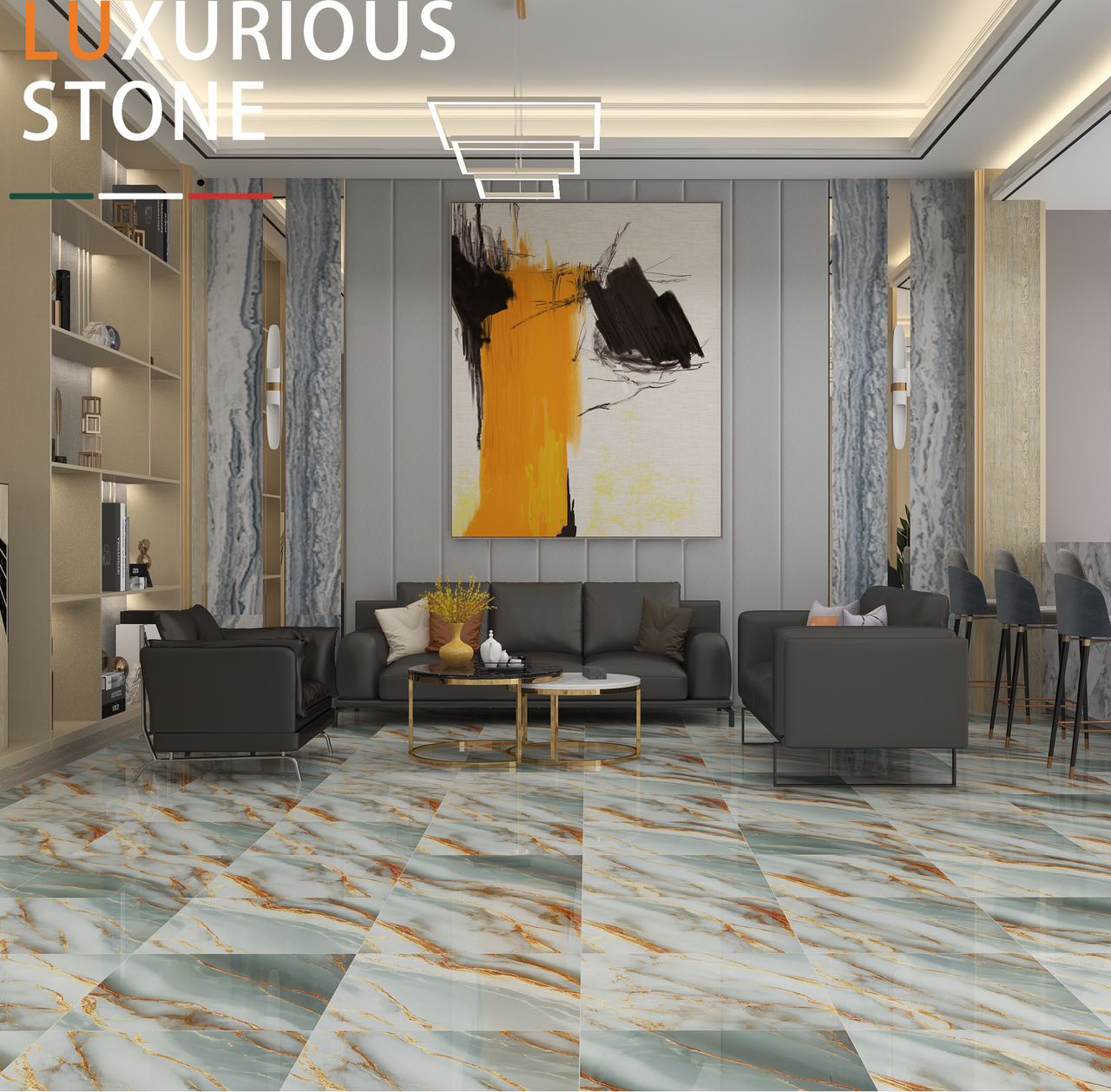 Gạch Sứ Tráng Men Vân Đá Cẩm Thạch Bóng Sang Trọng Hiện Đại 600x600mm Ốp Tường Gạch Nung và Sàn Nội Thất, Điểm Nhấn Kháng Khuẩn