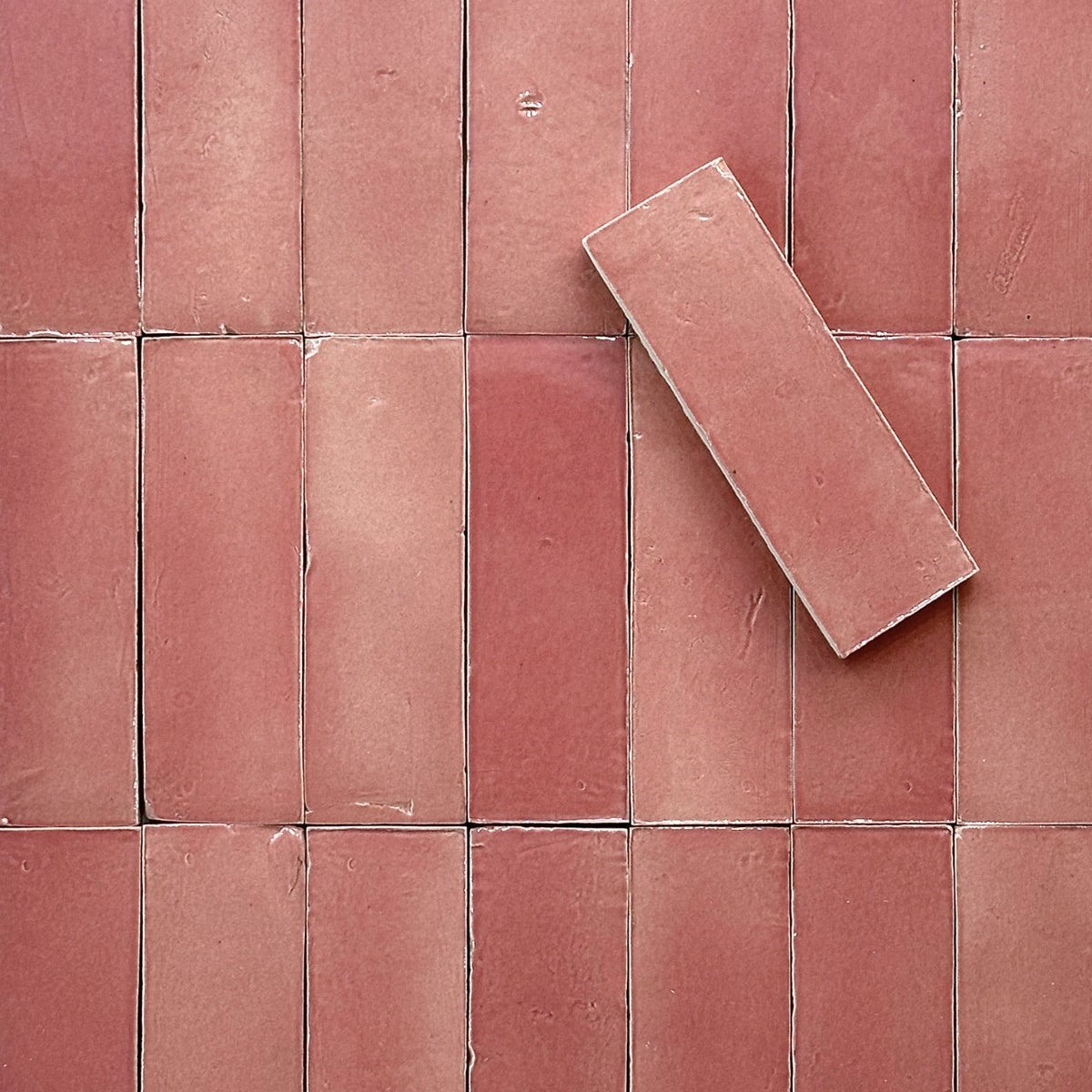 Gạch Sứ Zellige Ma-rốc Thủ Công, Bề Mặt Bóng, Hồng Chuyển Sắc, Phong Cách Mộc Mạc Sang Trọng, Dùng Lát Sàn Tường Nội Thất, Hiệu Ứng Gạch Nung