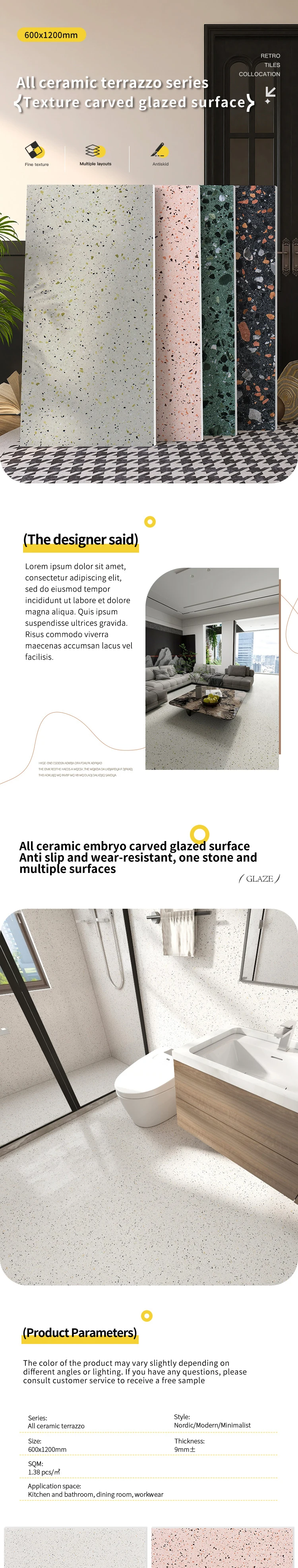 Gạch Terrazzo Toàn Sứ Bề mặt Men mờ Khắc tinh xảo, Phong cách Tươi mới Thanh lịch, Gạch Sứ dùng cho Cửa hàng Thời trang, Khách sạn