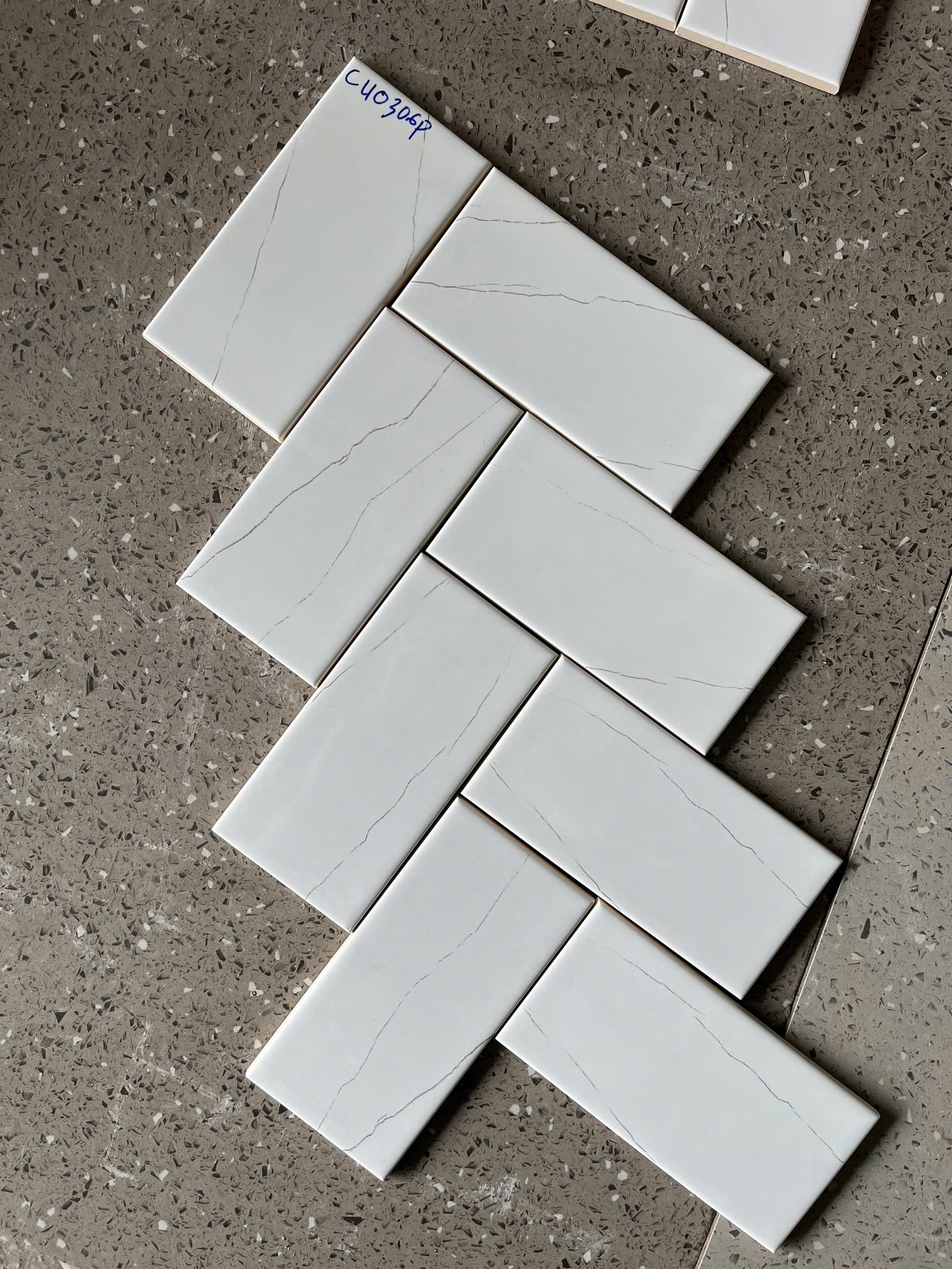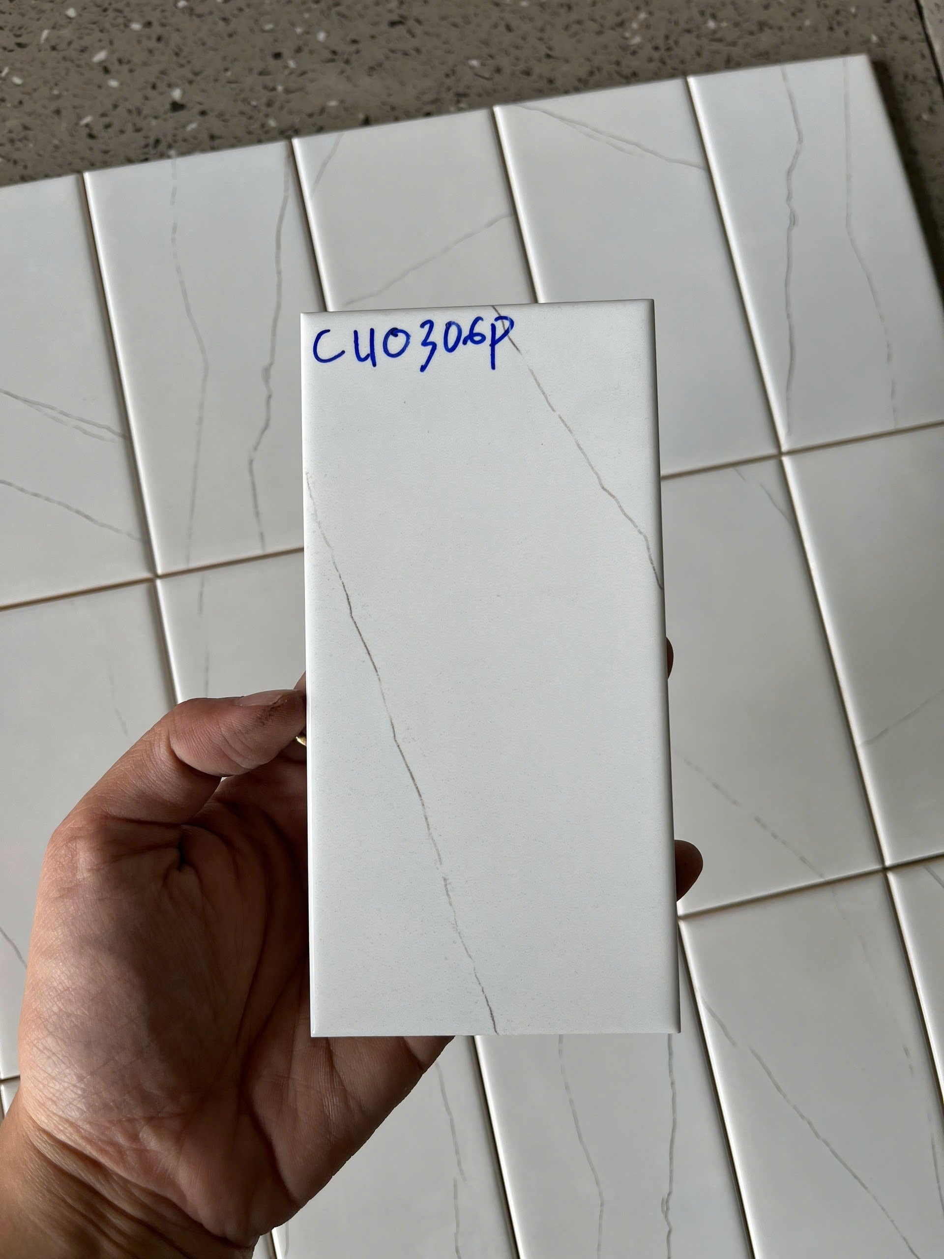 Gạch thẻ VN KT 75x150mm trắng vân tia bóng phẳng mã CU0306P