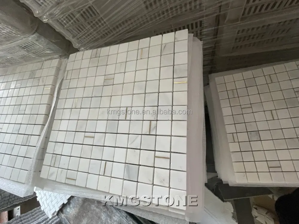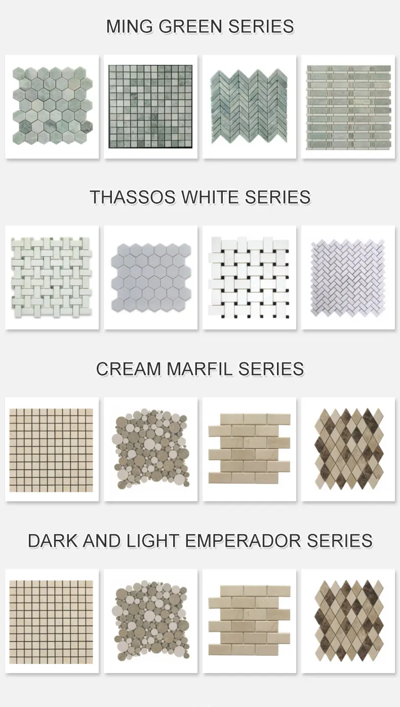Gạch Mosaic Đá cẩm thạch Kính 4mm Thiết kế Hiện đại Hình Lục giác Vuông Kiểu Parquet Phong cách Trang trí sàn Phòng tắm Bếp Hồ bơi ngoài trời