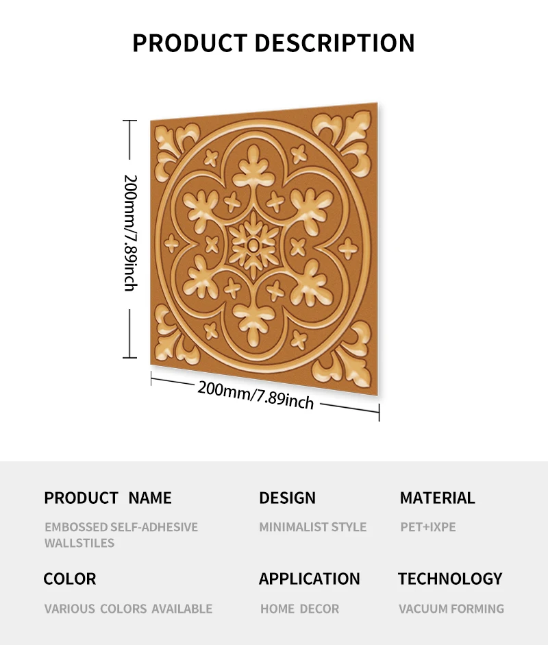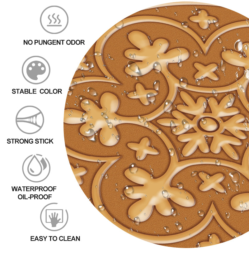 Độ dính chắc/Không thấm nước & Chống dầu/Thân thiện với môi trường/Dễ lắp đặt/Màu sắc ổn định và sống động/Không có mùi hăng/Có thể tháo rời
