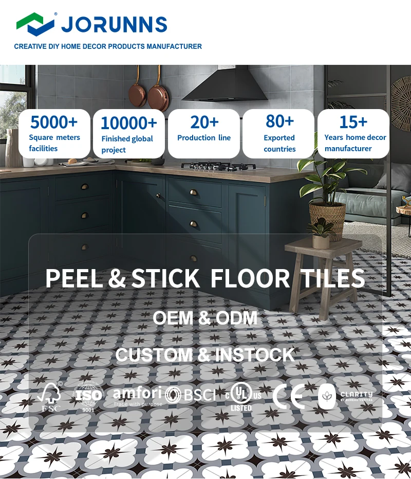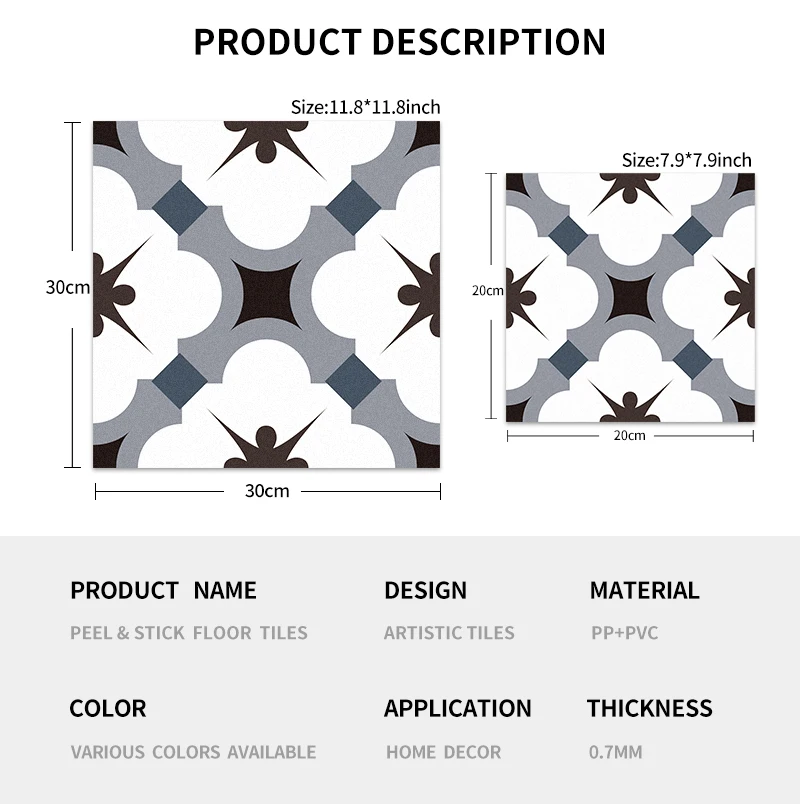1 Bạn là công ty thương mại hay nhà máyTrả lời: Chúng tôi là nhà sản xuất chuyên nghiệp với nhà máy tự sở hữu rộng 5000 mét vuông. Chúng tôi có đầy đủ các thử nghiệm và chứng nhận như IS09001:2015, BSCI, FSC, UL, Clarity for Factory và California Proposition 65- Lead (Pb), CE, RoHS Chỉ thị (EU), v.v. cho các sản phẩm.2 Thế mạnh của bạn là gì?Trả lời: Chúng tôi có đội ngũ thiết kế chuyên nghiệp, họ thiết kế phong cách mới mỗi tháng để kiểm tra thị trường, đáp ứng nhu cầu khác nhau của thị trường b: Chất liệu thân thiện với môi trường - không có formaldehyde, không có mùi hăng, độ nhớt mạnh, không cong vênh, không có cặn c: Thiết bị nhập khẩu tiên tiến giúp màu sắc trung thực và ổn định d: Dự trữ một số mẫu hot để giao hàng nhanh chóng3 Các mẫu có sẵn không? Bạn có hỗ trợ tùy chỉnh không?Tất nhiên rồi. Mẫu miễn phí có sẵn. Chúng tôi hỗ trợ tùy chỉnh và cung cấp dịch vụ một cửa từ thiết kế, lấy mẫu, sản xuất, vận chuyển, sau đó có thể tiết kiệm rất nhiều thời gian của bạn4 Có bao nhiêu miếng gạch lát sàn cho 10ft2?Lấy kích thước thông thường 7,9 * 7,9 inch và 11,8 * 11,8 inch, ví dụ: 24 chiếc cho kích thước 7,9 * 7,9 inch, 10 chiếc cho kích thước 11,8 * 11,8 inch5: Thời gian sản xuất gạch lát sàn của bạn là bao lâu?Thông thường, phải mất 2-3 ngày làm việc nếu hàng có sẵn trong kho. hoặc 7 ~ 12 ngày làm việc nếu hàng không có trong kho, tùy thuộc vào số lượng yêu cầu.6: Phương pháp đóng góiGói thông thường: túi opp + thẻ chèn + hộp carton. Có thể tùy chỉnh gói của bạn theo yêu cầu của bạn