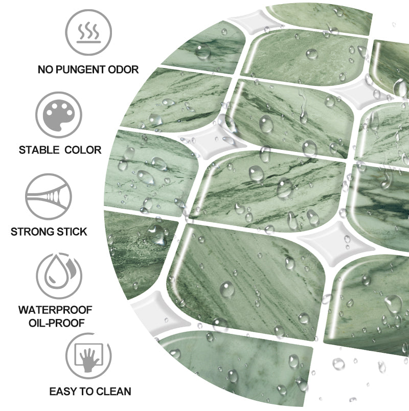 Độ dính chắc/Không thấm nước & Chống dầu/Thân thiện với môi trường/Dễ lắp đặt/Màu sắc ổn định và sống động/Không có mùi hăng/Có thể tháo rời