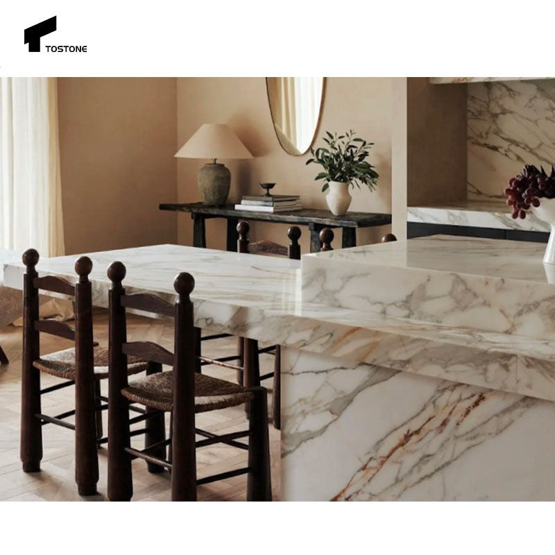 Mặt Bàn Đá Cẩm Thạch Tự Nhiên Vàng Brazil Cao Cấp Tostone dành cho Nhà ở, Biệt thự, Căn hộ, Phòng ăn, Bàn đảo, Bàn trang điểm, Tường.