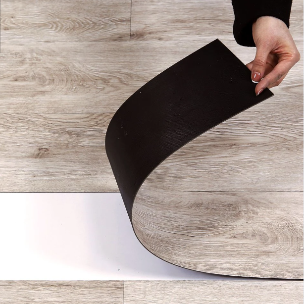 Miếng dán sàn nhựa LVT PVC tự dính dạng tấm ván vân gỗ dùng trong nhà, lưng khô