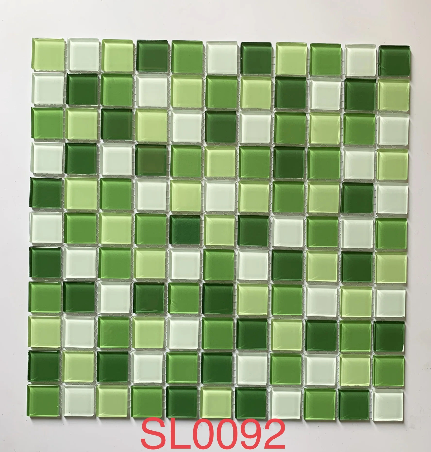 Mosaic kính 48x48 mm thiết kế xanh dương nóng và vàng trang trí tường phòng tắm, bếp dạng lưới