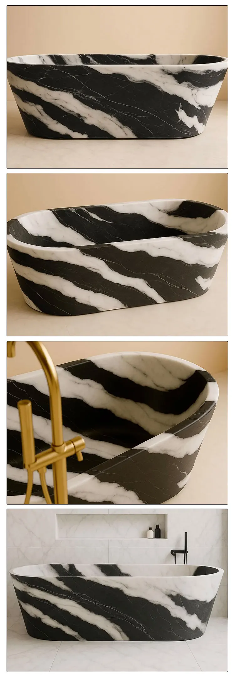 Nội thất phòng tắm Tostone sản xuất trực tiếp từ nhà máy, Bồn tắm đá tự nhiên hình bầu dục Trắng Panda