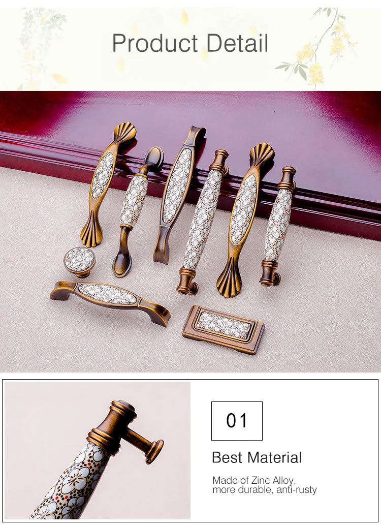 Tay nắm tủ cổ điển gốm đồng NAIERDI