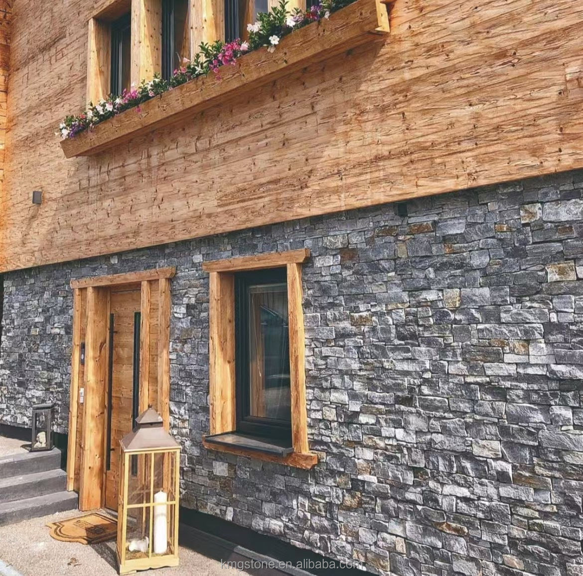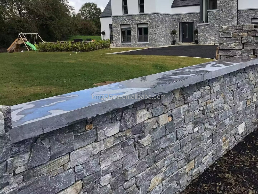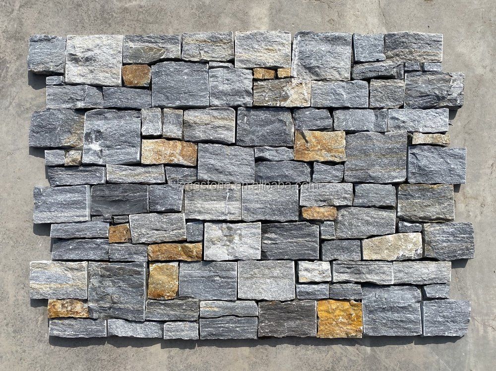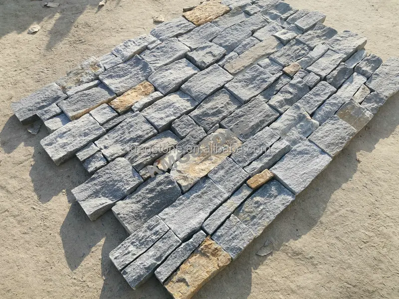 Canada phổ biến ngôi nhà mặt tiền tự nhiên đá phiến thạch anh veneer đá cho góc trụ cột bảng đá xanh xếp chồng lên nhau ngoài trời.