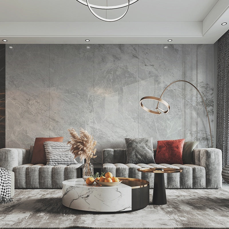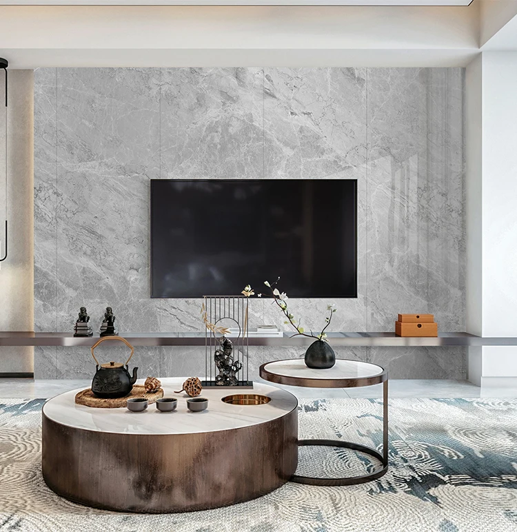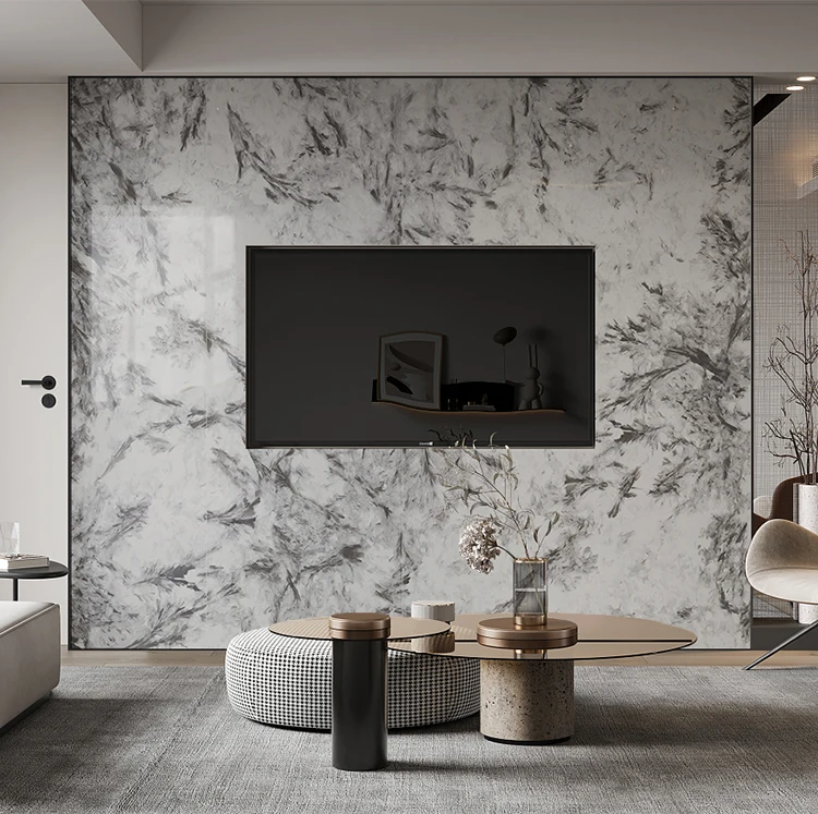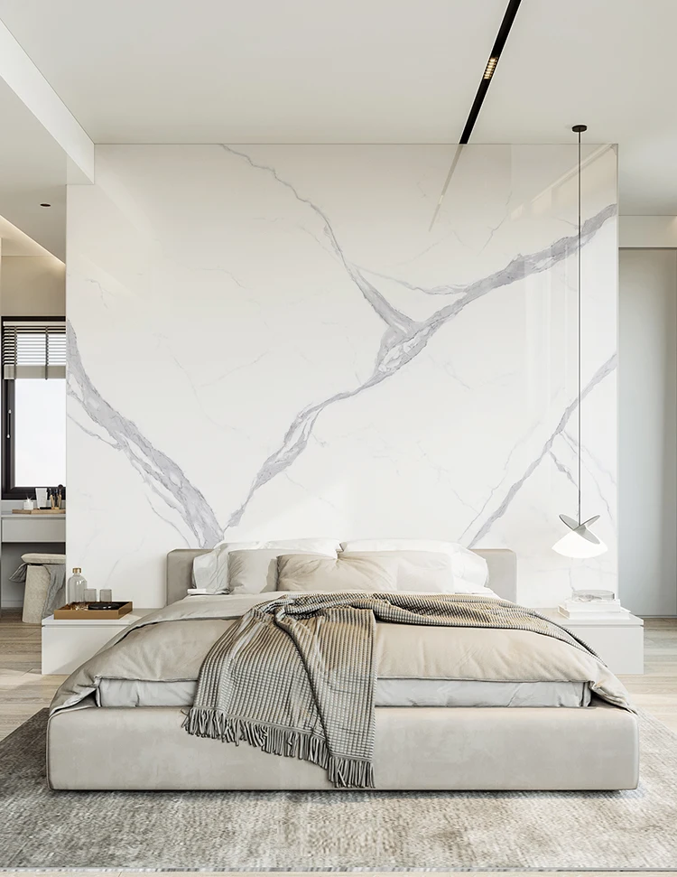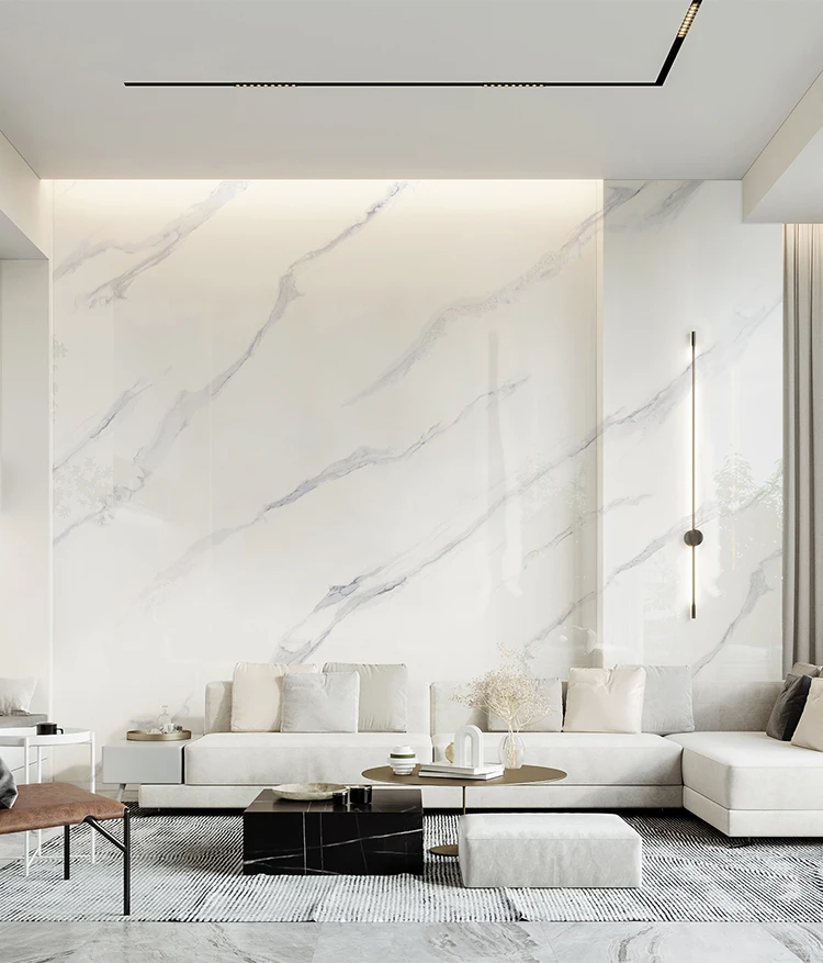 Phiến đá nung kết lớn trắng bóng đồng chất đánh bóng toàn phần tráng men mô phỏng vân đá cẩm thạch tự nhiên họa tiết vô hạn nhà máy