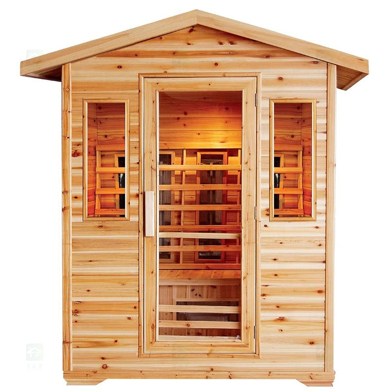 Phòng xông hơi hồng ngoại và xông hơi ướt bằng gỗ tuyết tùng, tùy chỉnh cho 2-5 người, hoàn thiện cho sân vườn ngoài trời