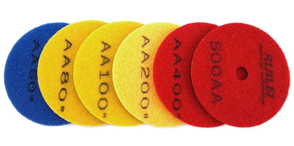 RIJILEI 4 Inch Super Diamond Polishing Pads 6 Steps Copper Metal Bond Wet Polishing Pad for Granite Marble Stone Grinding Discs