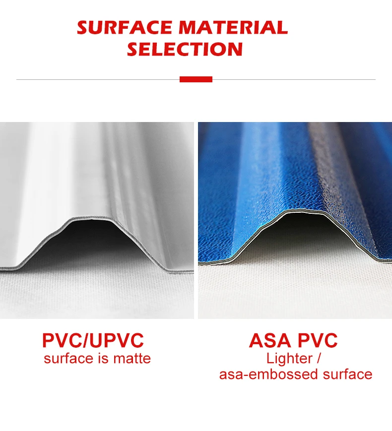 Sample Purchase Corrugated Roofing Sheet Workshops Plants UPVC Plastic PVC Tile Techos ASA Surface Plain Roof Tiles PVC Sample
